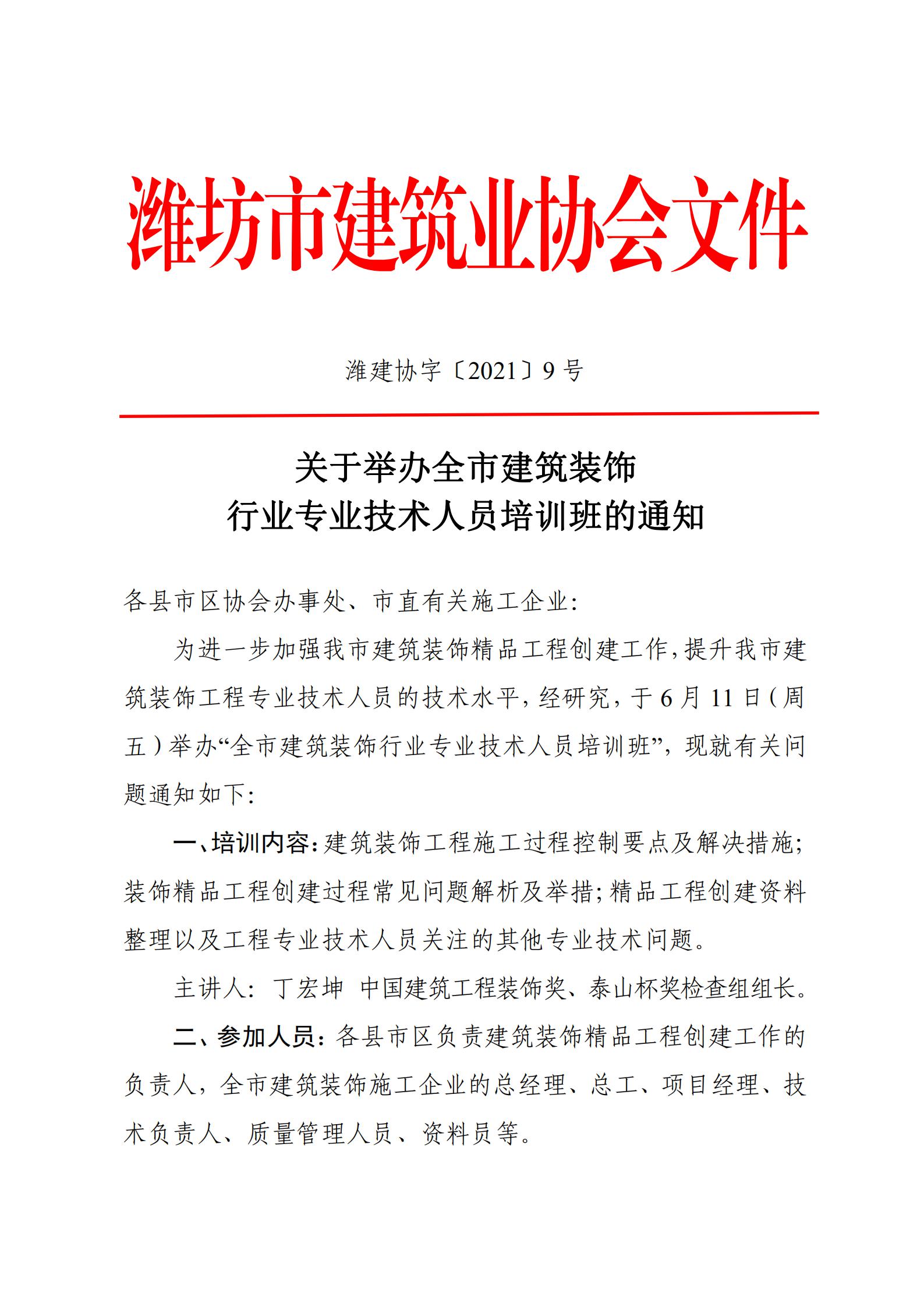 关于举办全市建筑装饰行业专业技术人员培训班的通知