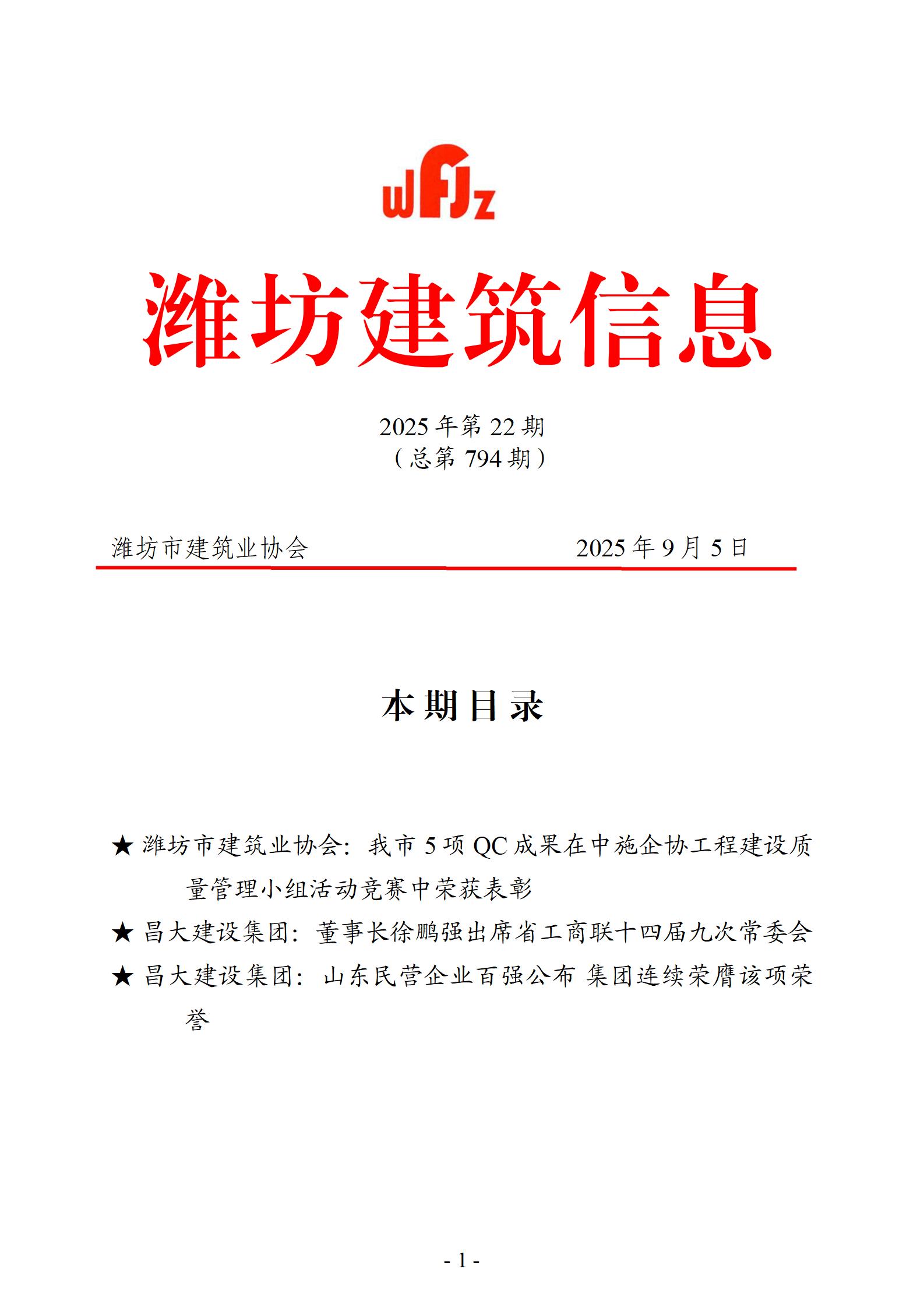 潍坊建筑信息 2025年第22期 (总第 794期)