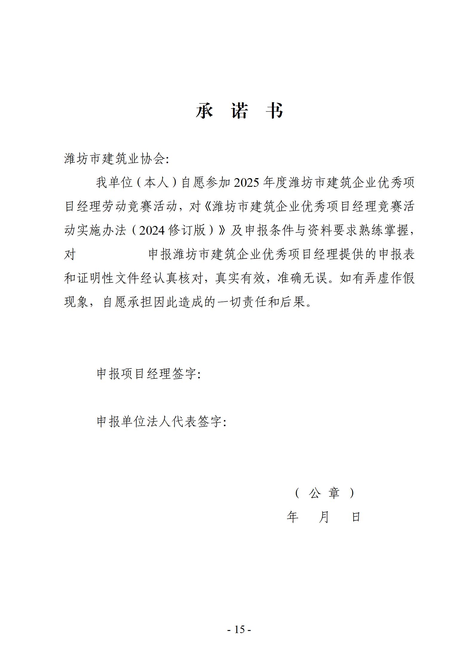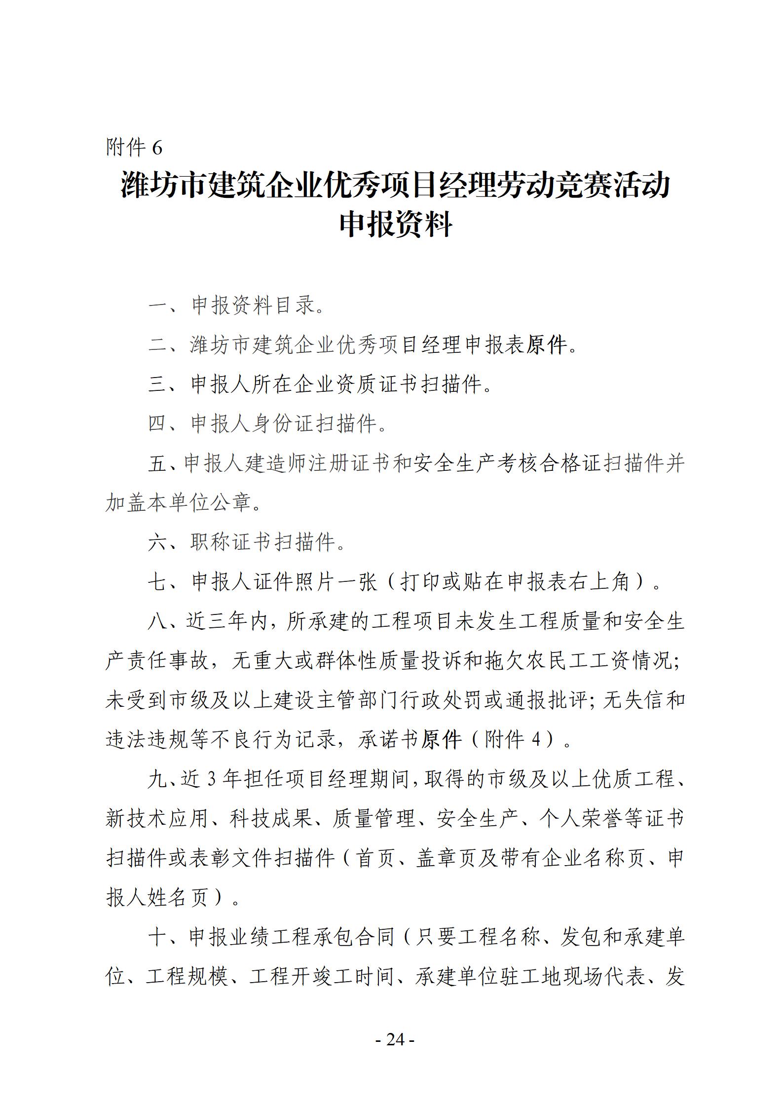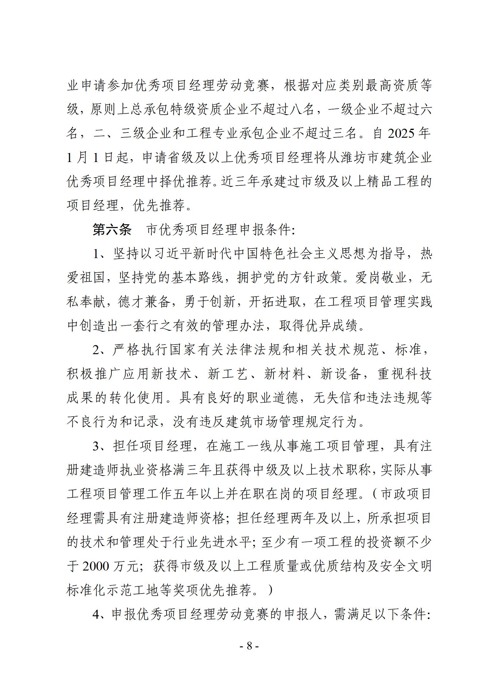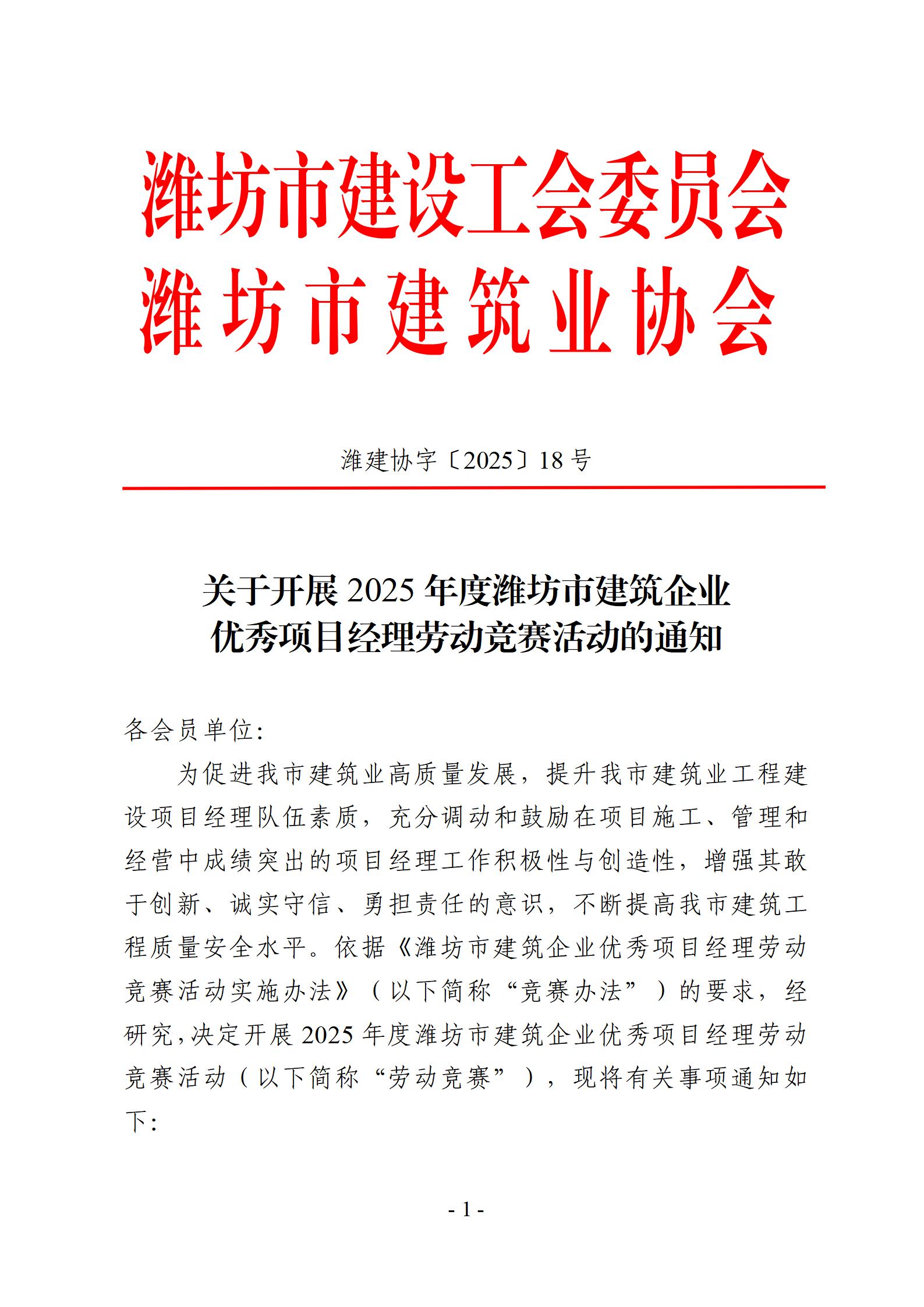 关于开展2025年度潍坊市建筑企业优秀项目经理劳动竞赛活动的通知