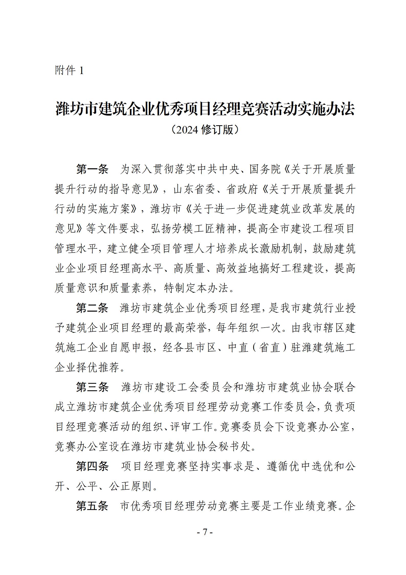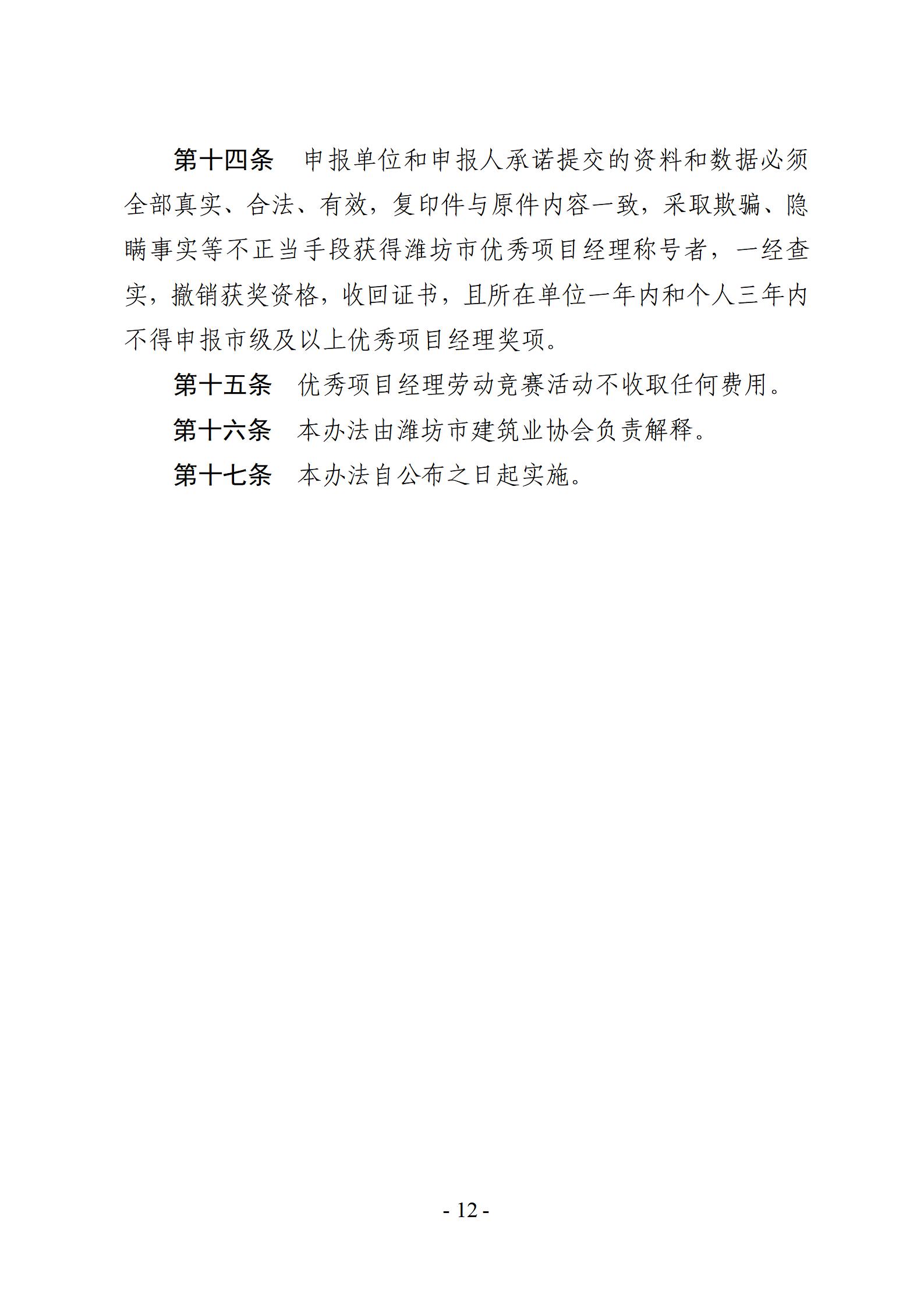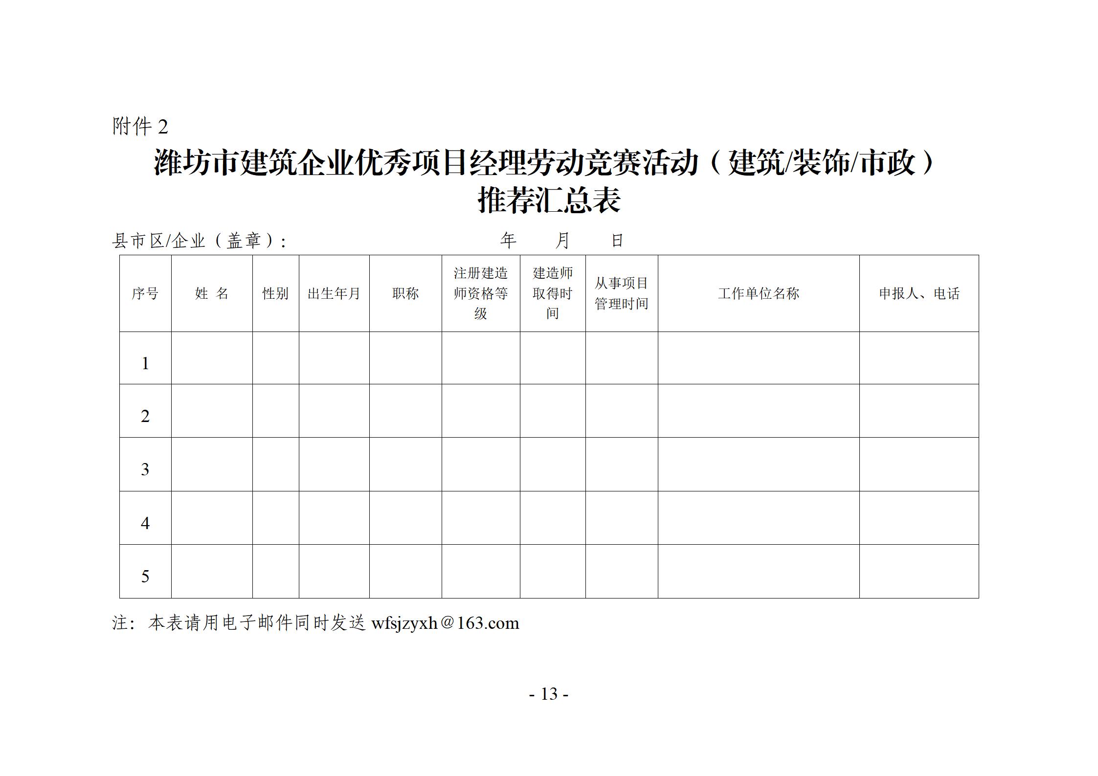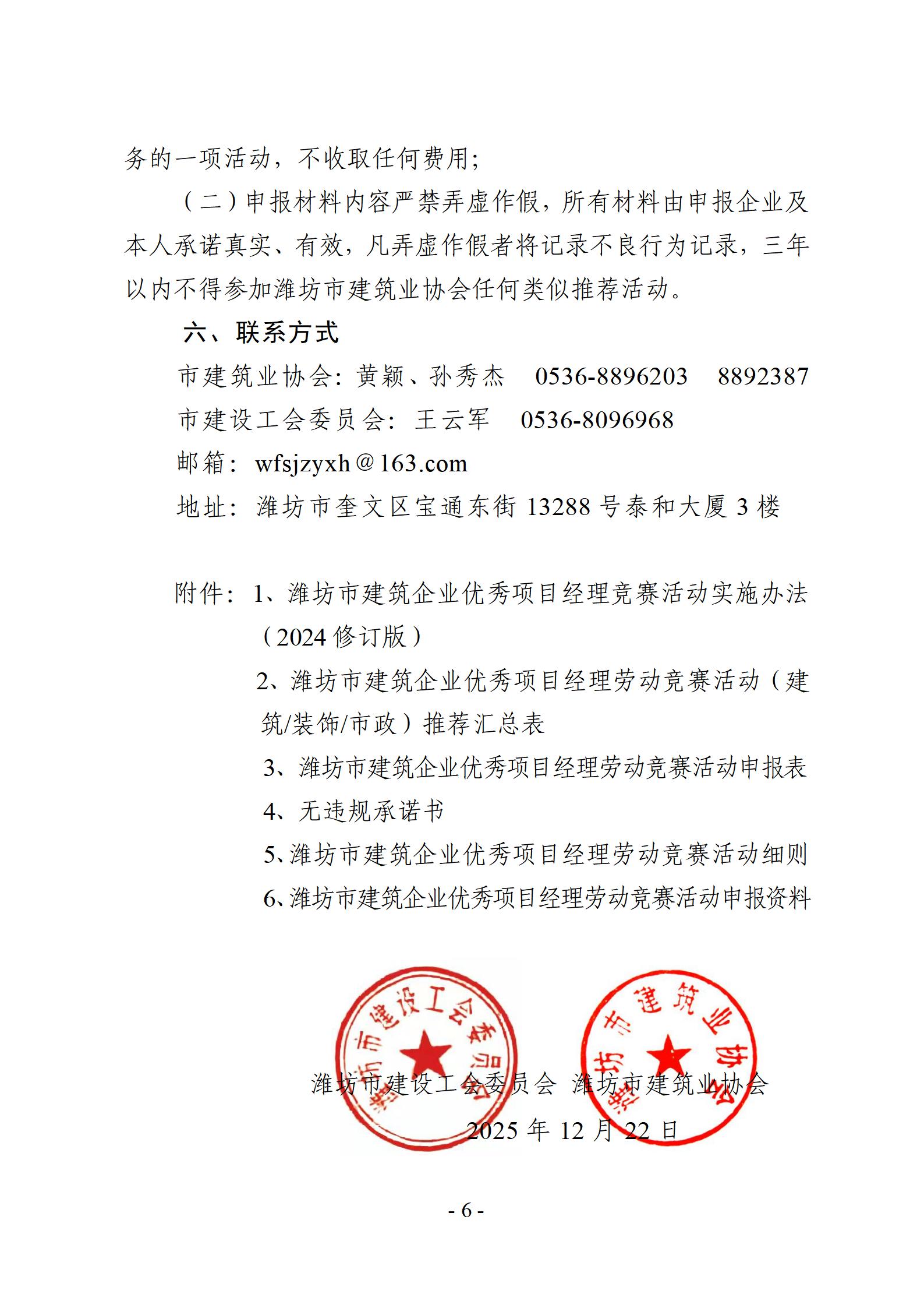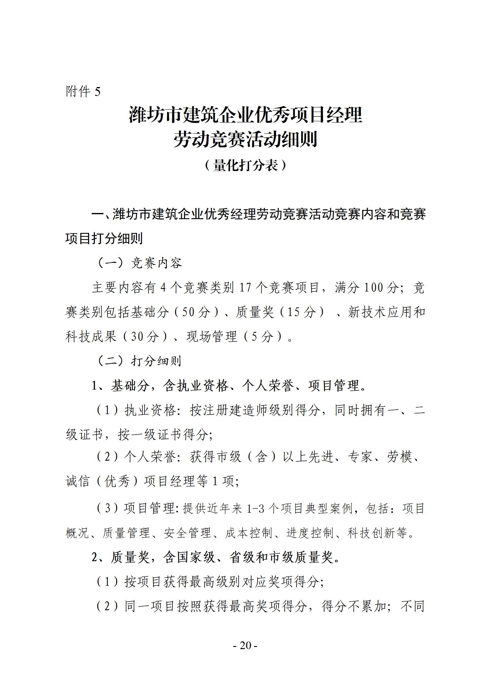 关于开展2025年度潍坊市建筑企业优秀项目经理劳动竞赛活动的通知