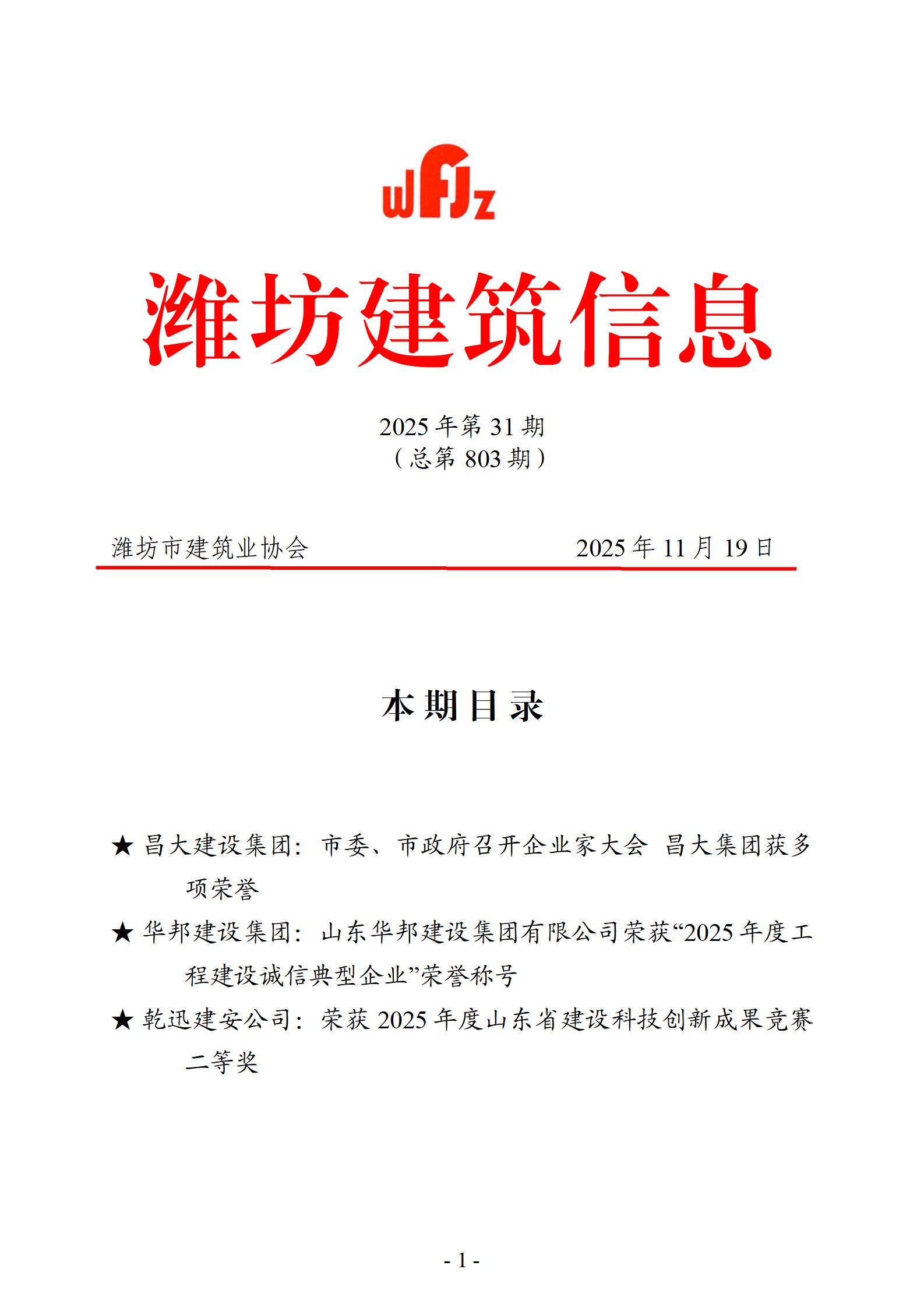 潍坊建筑信息 2025年第31期 (总第 803期)