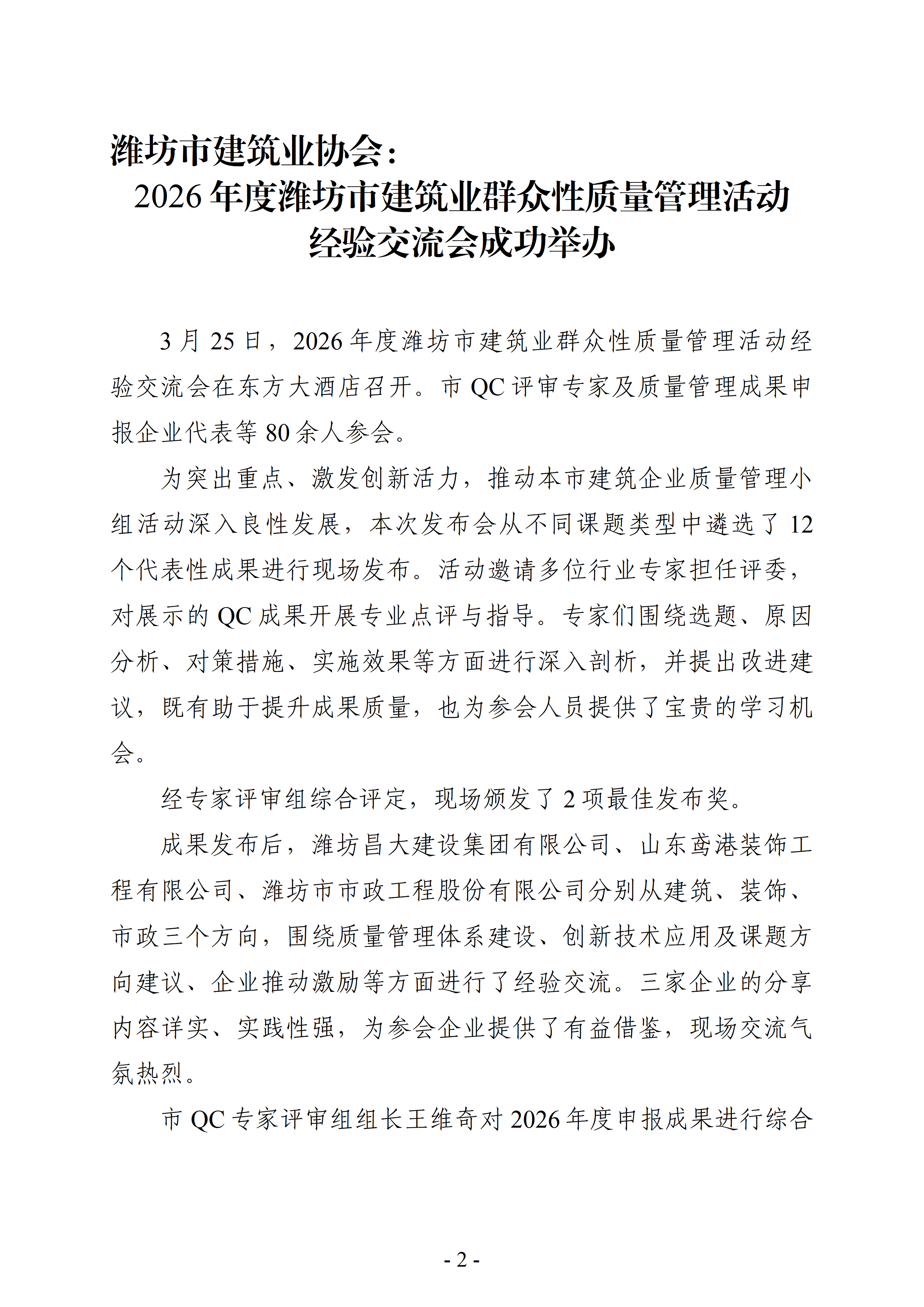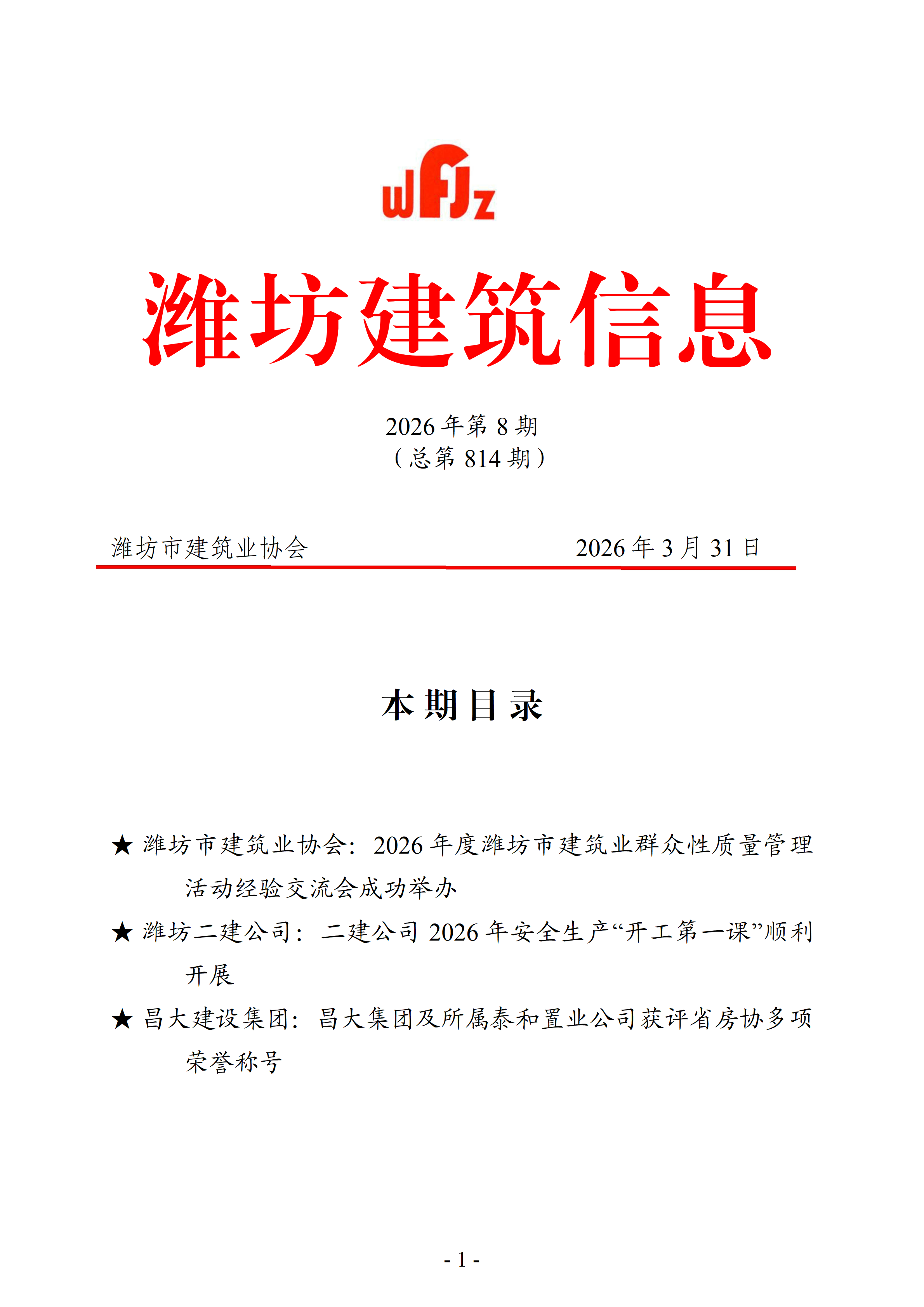 潍坊建筑信息 2026年第8期 (总第814期)