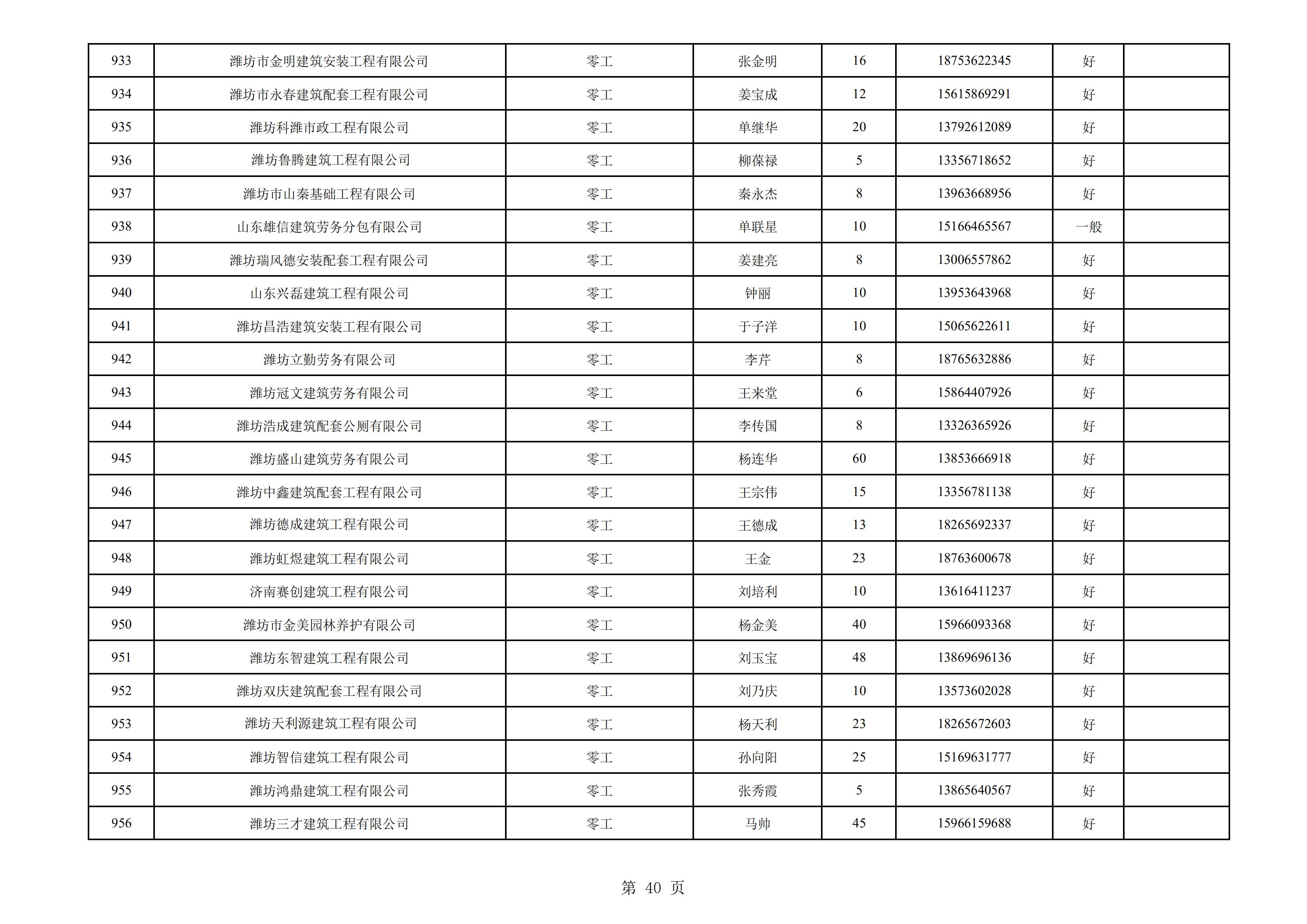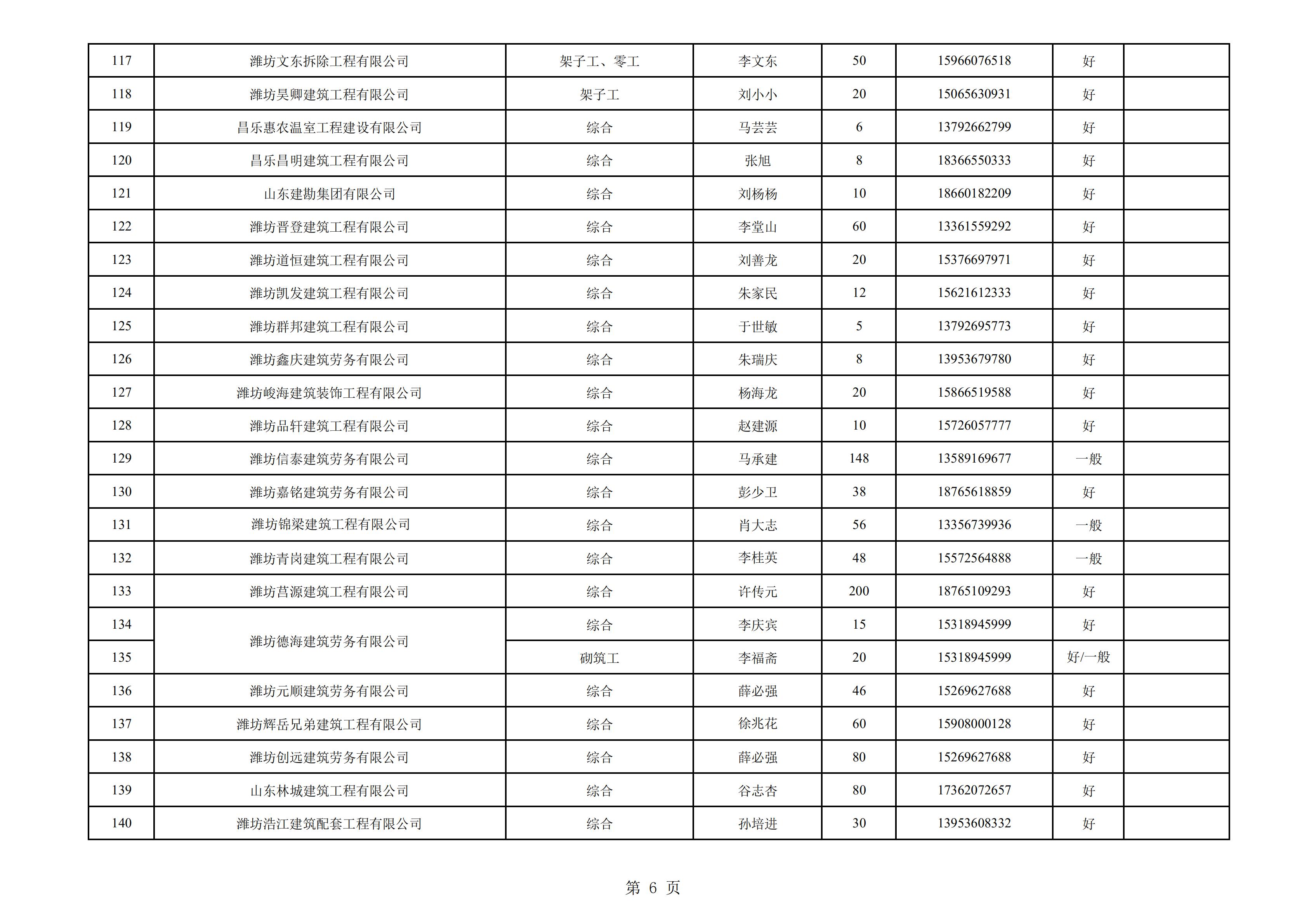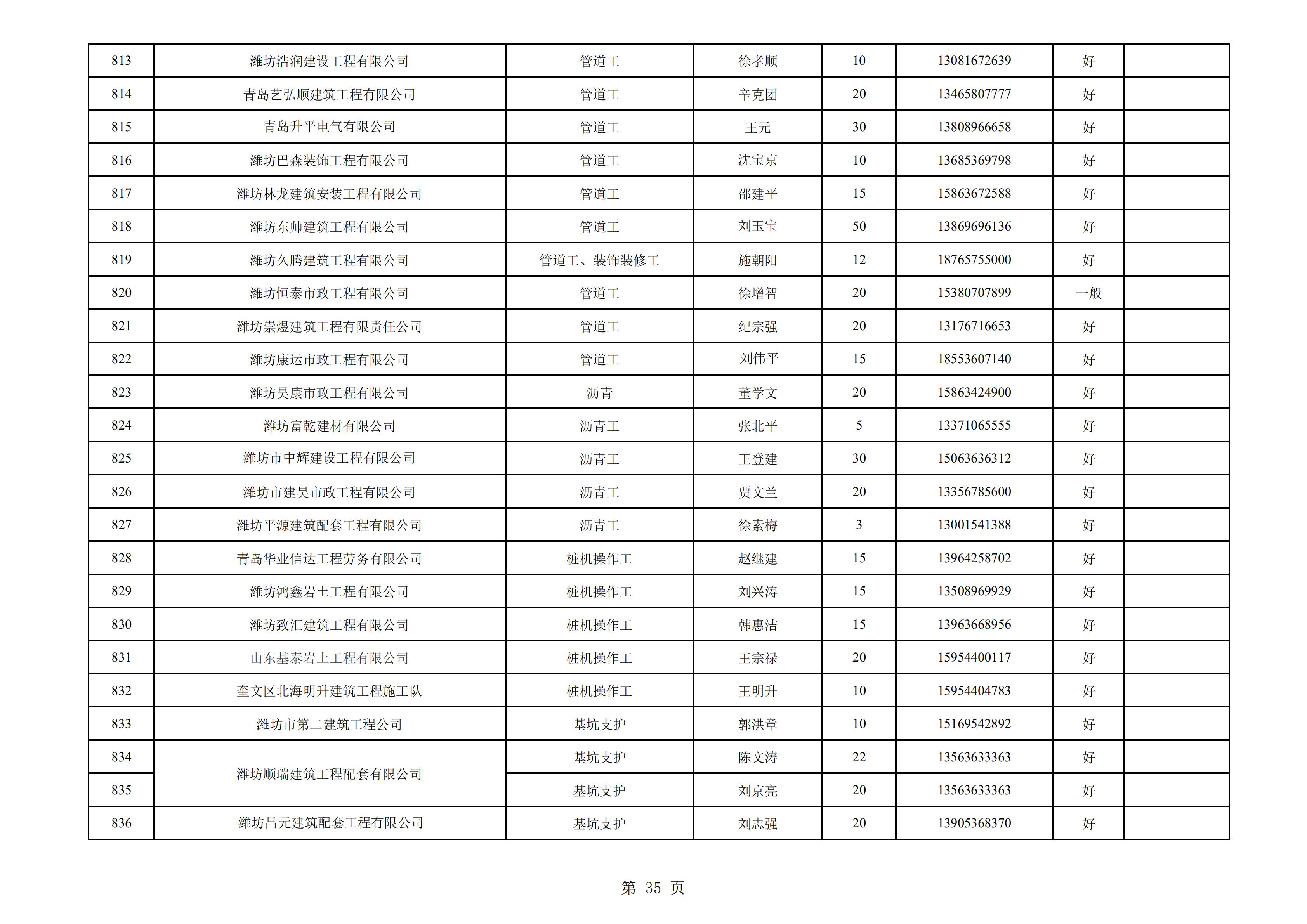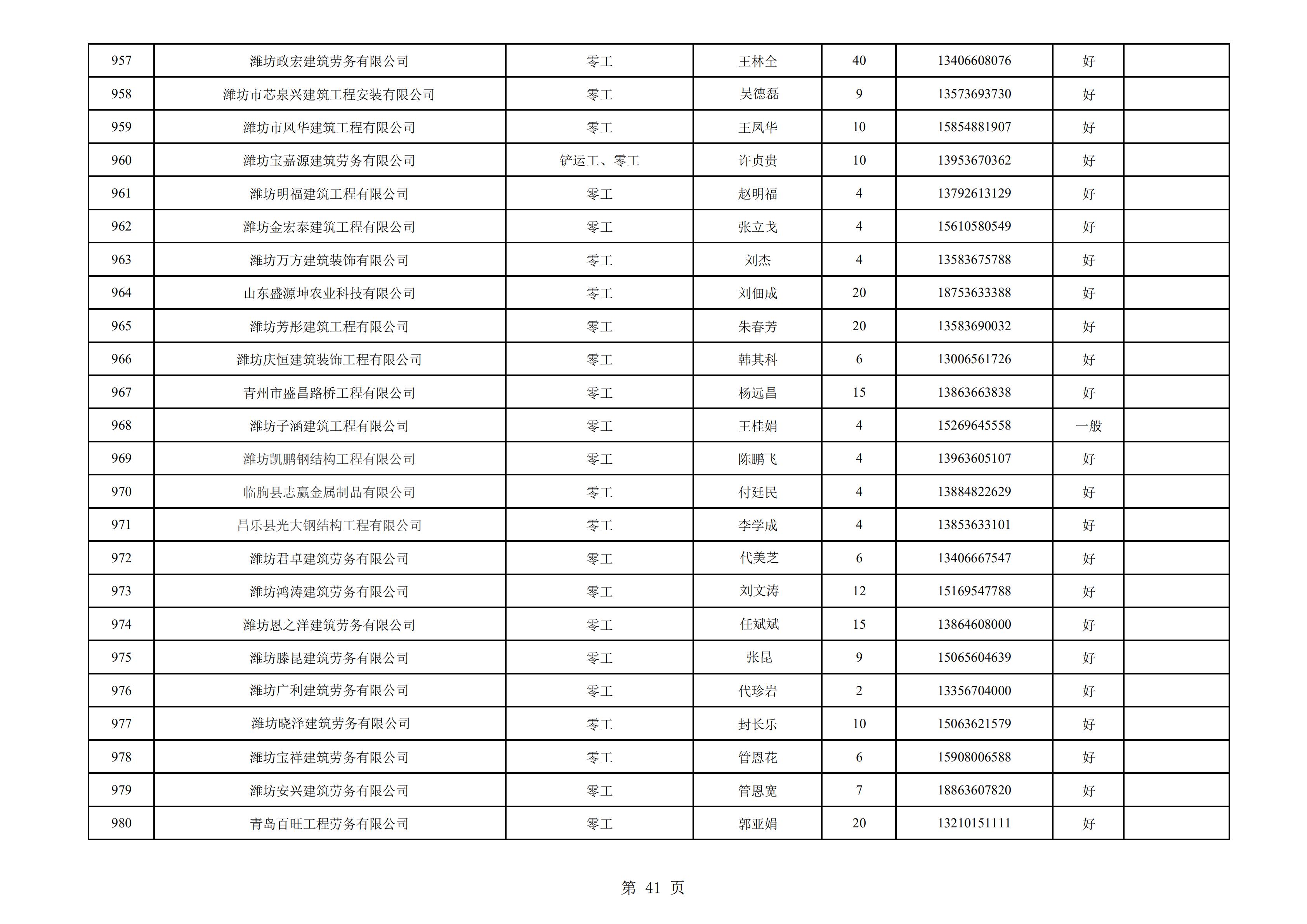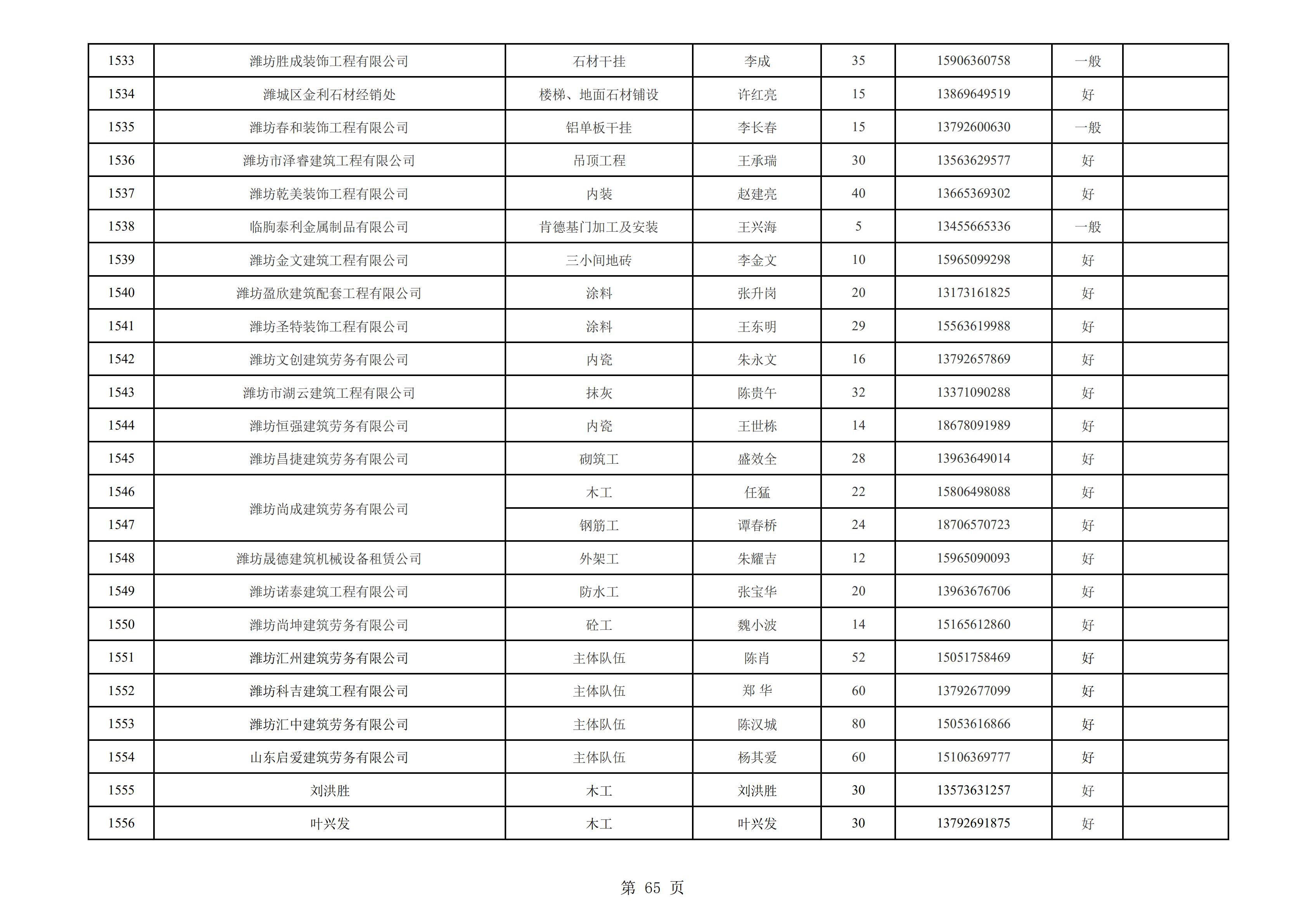 潍坊市建筑劳务队伍数据信息(截止到2020年3月31日)