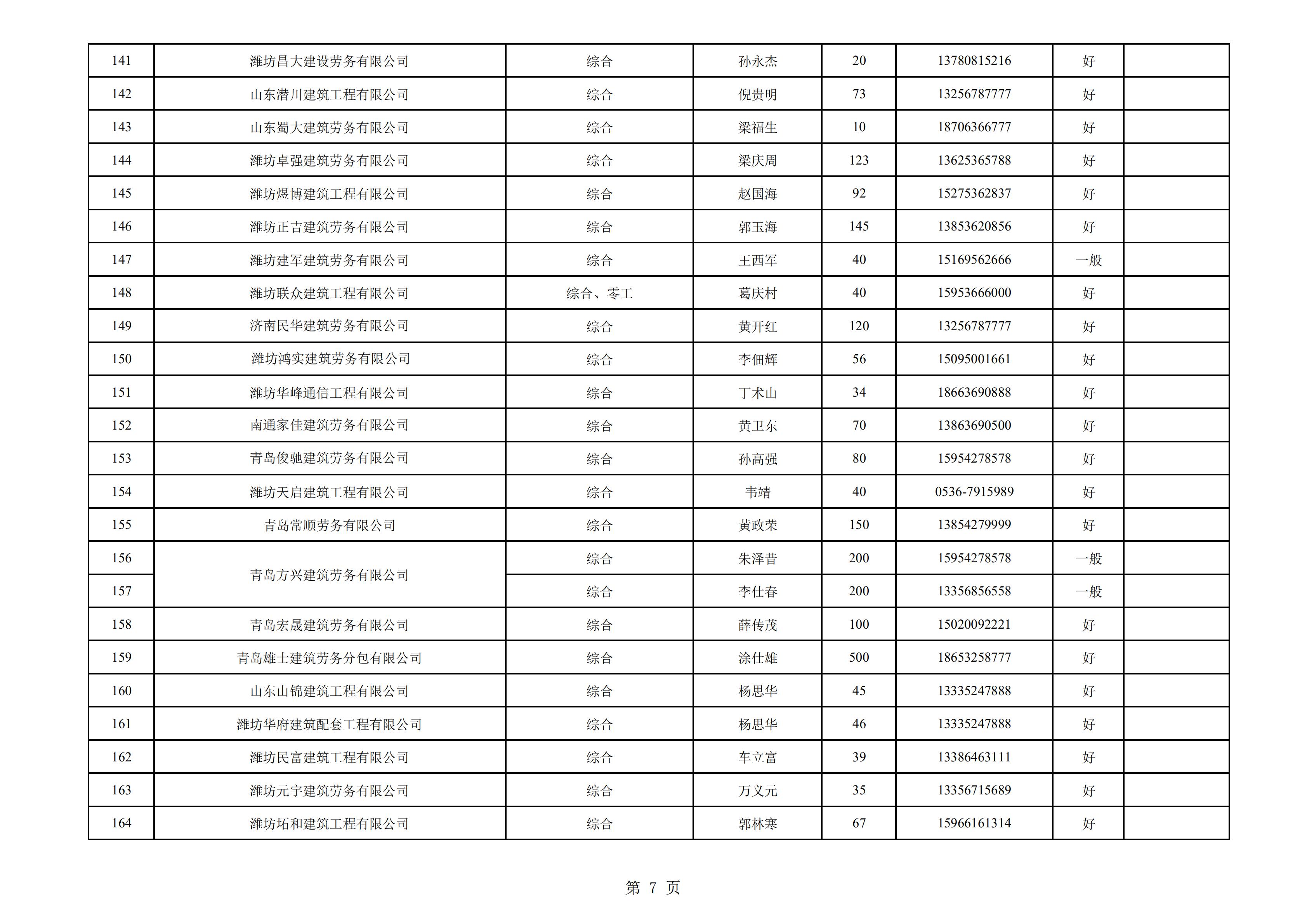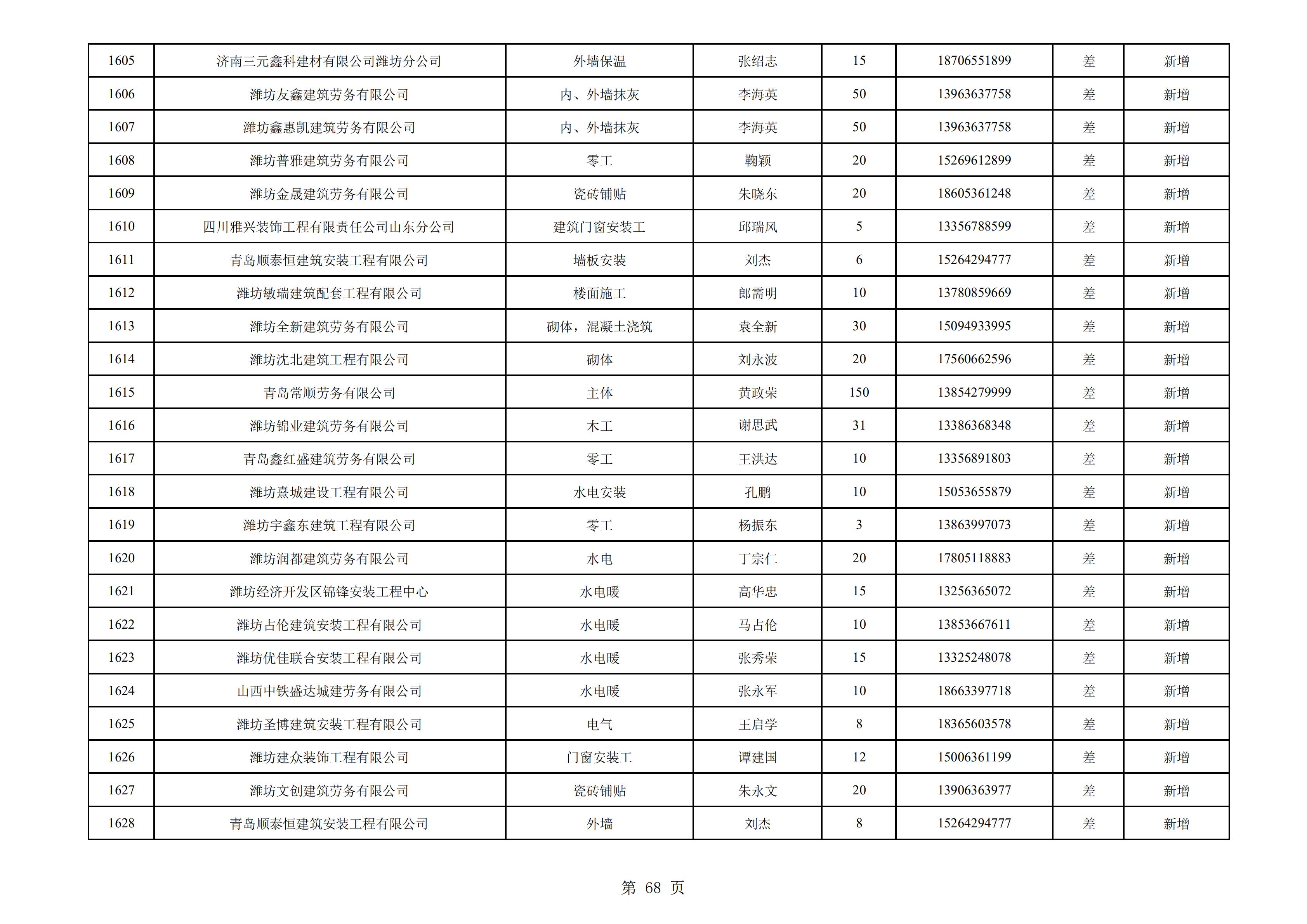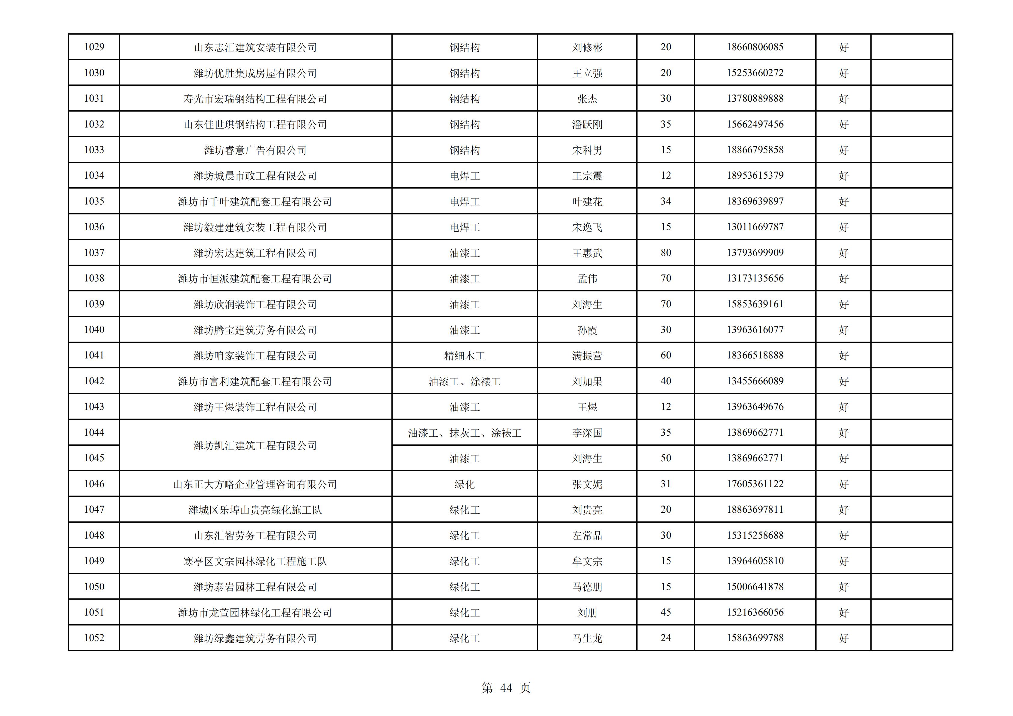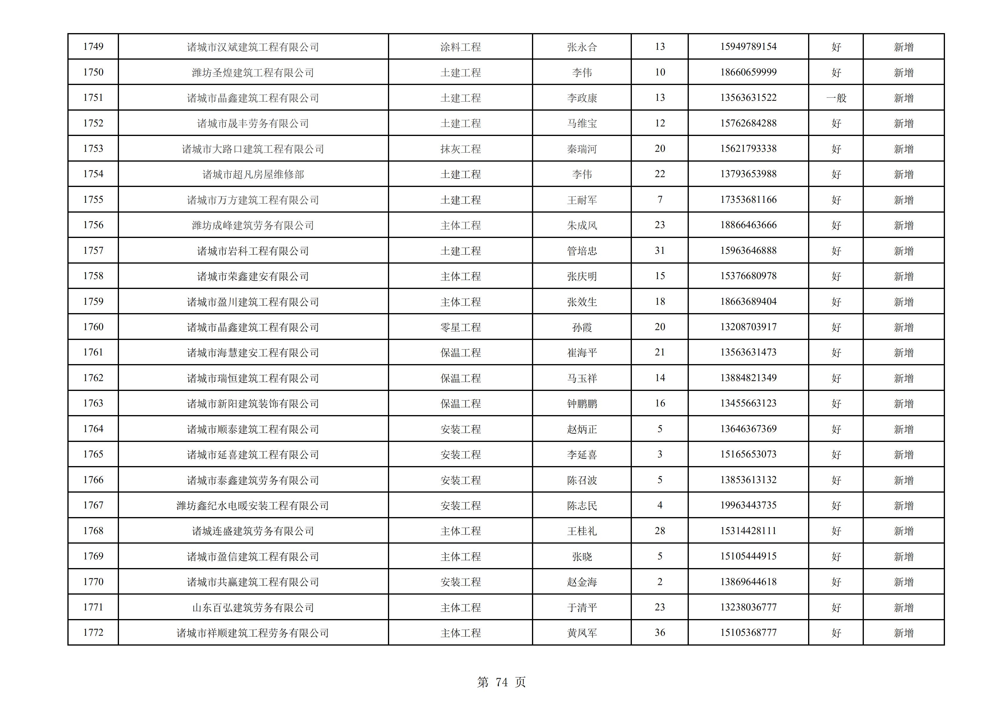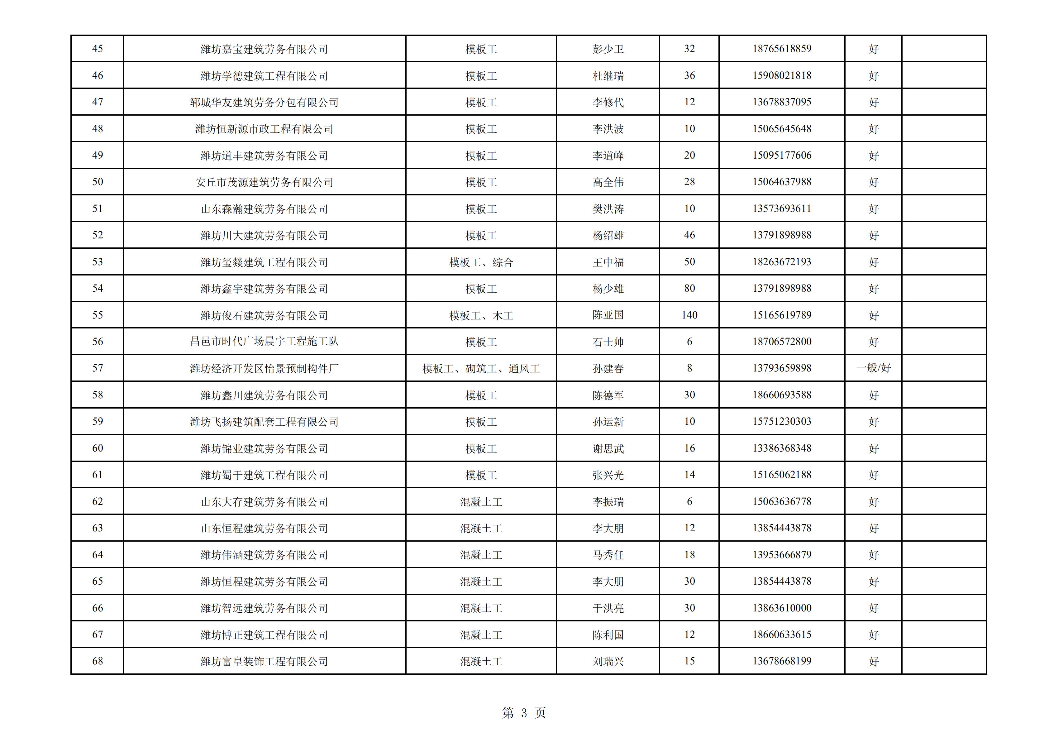 潍坊市建筑劳务队伍数据信息(截止到2020年3月31日)
