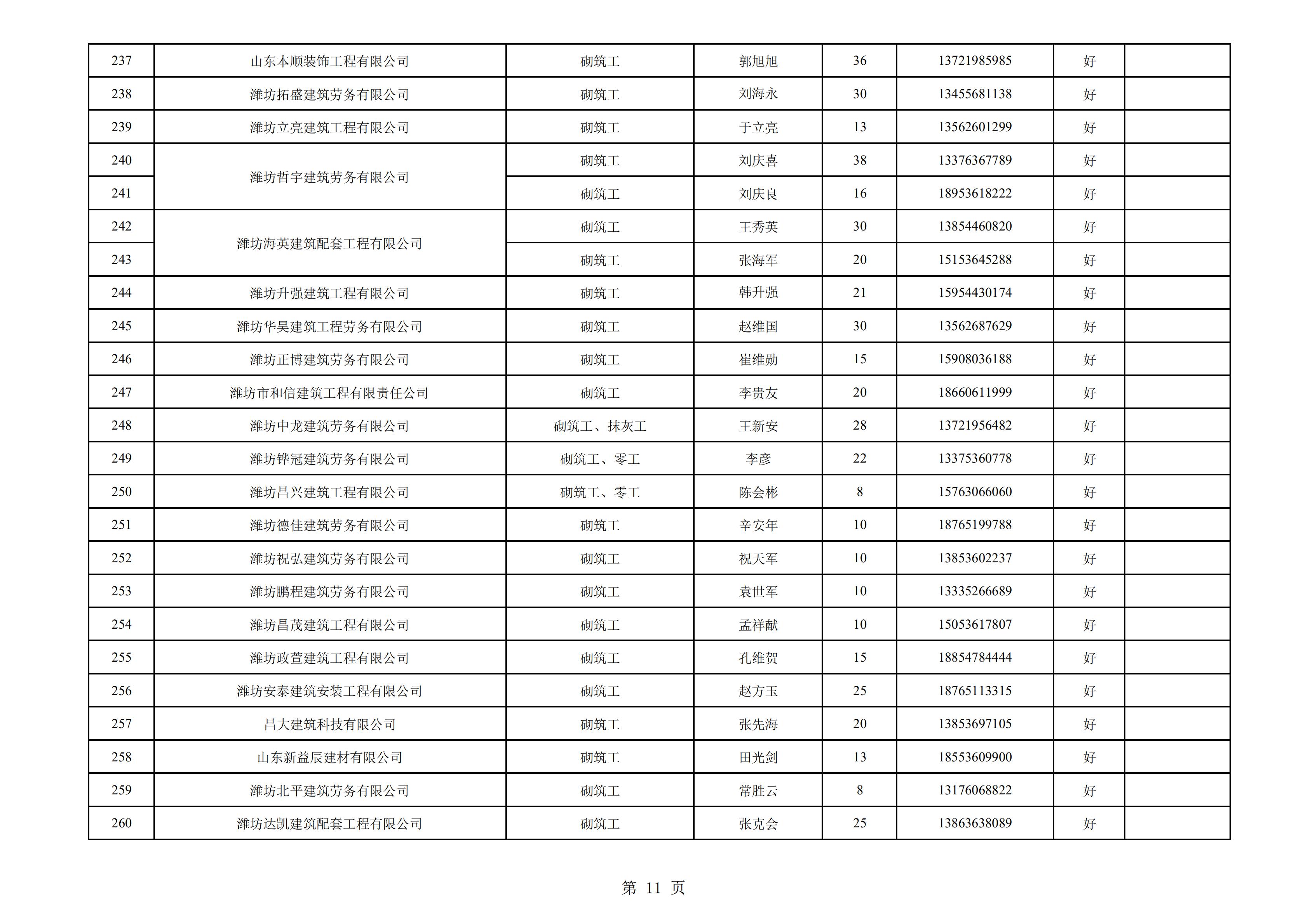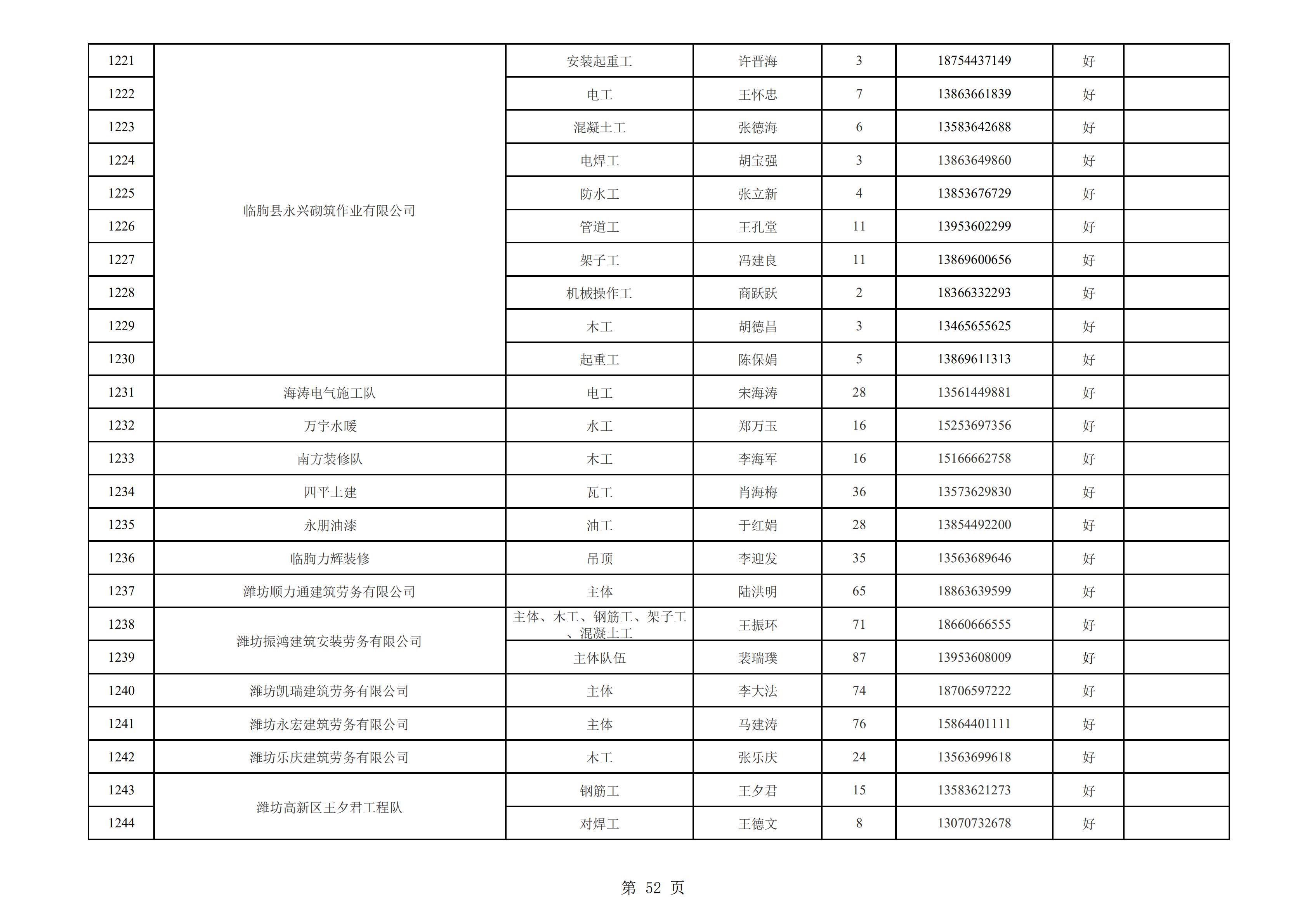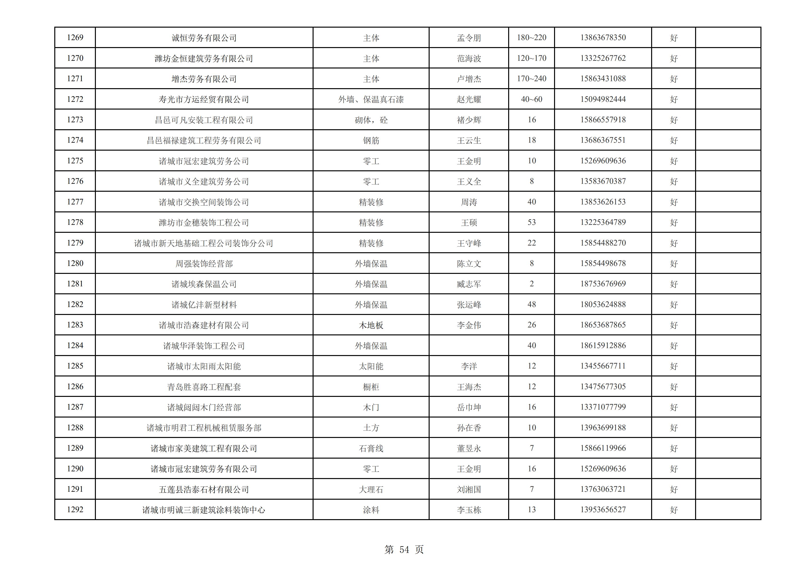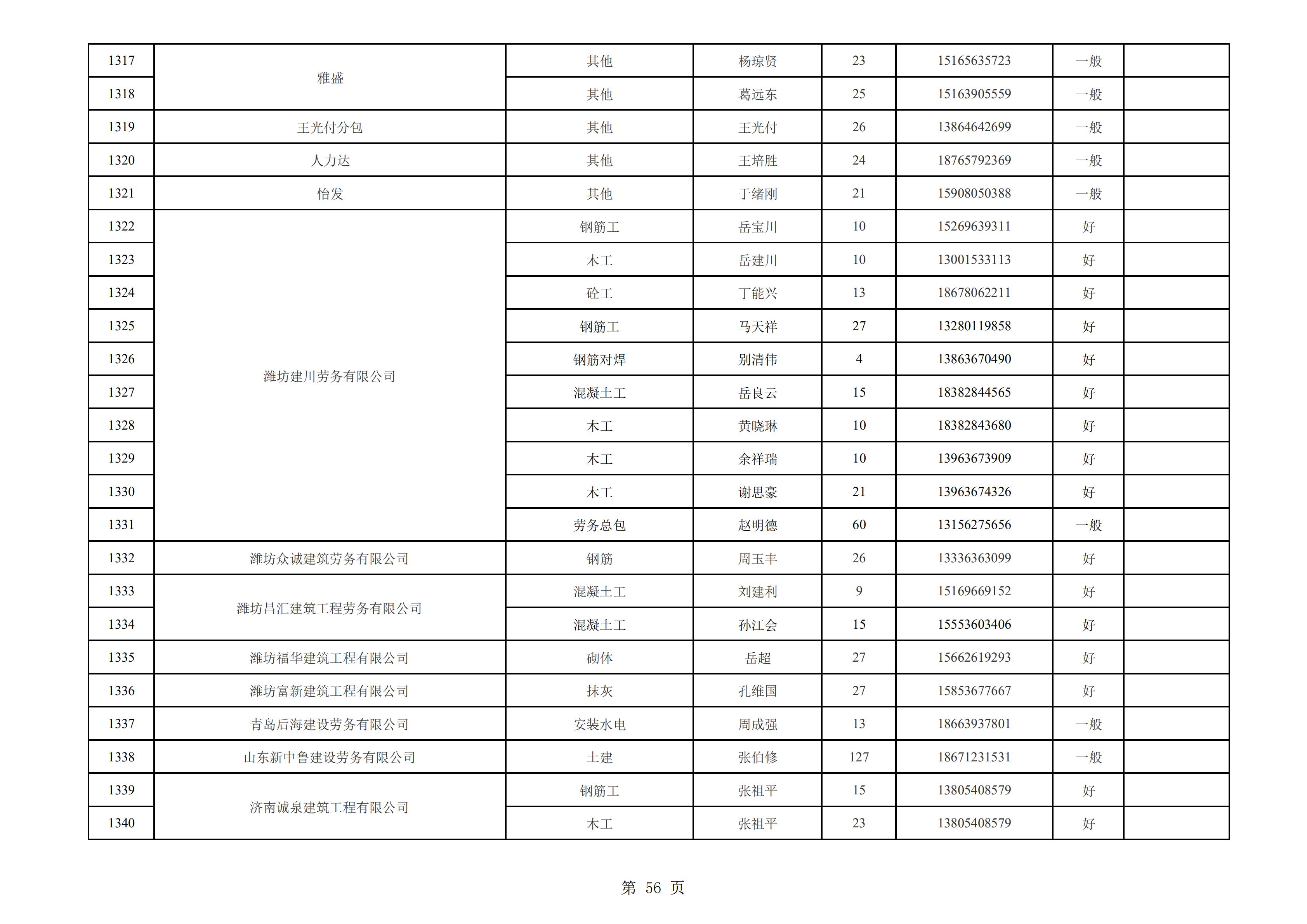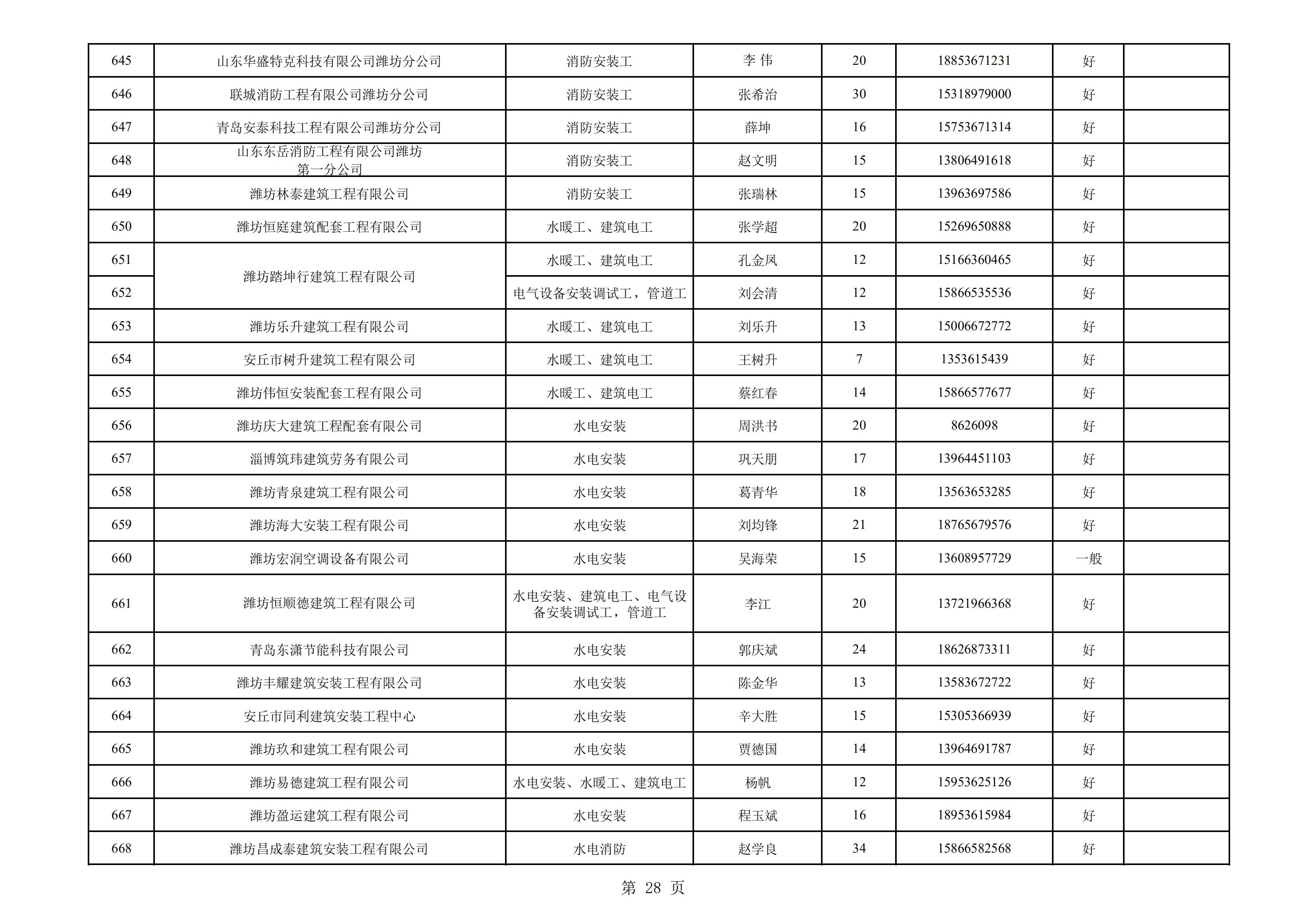 潍坊市建筑劳务队伍数据信息(截止到2020年3月31日)