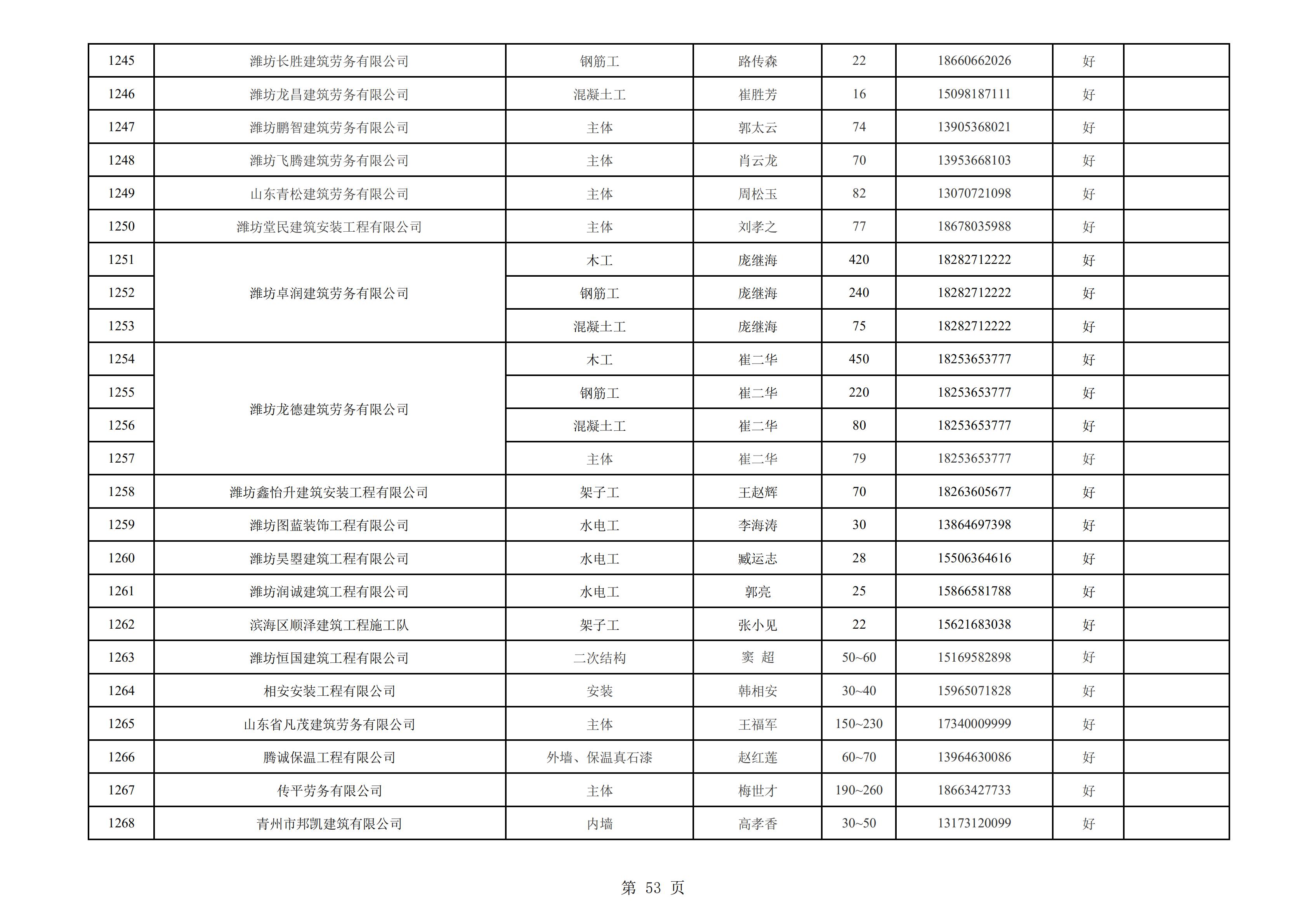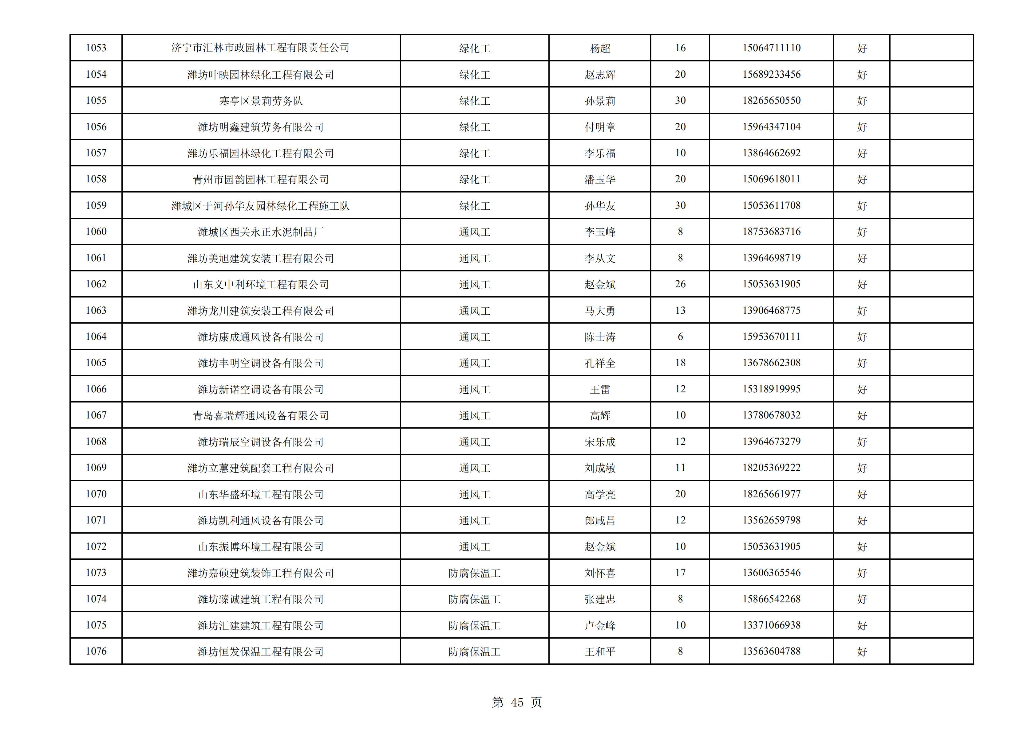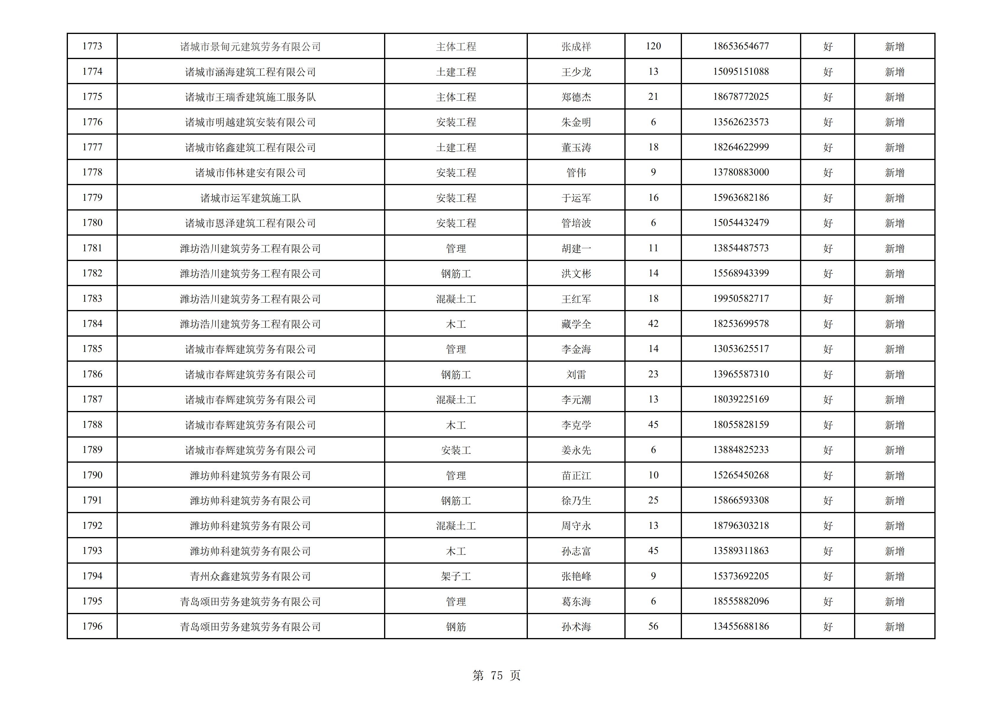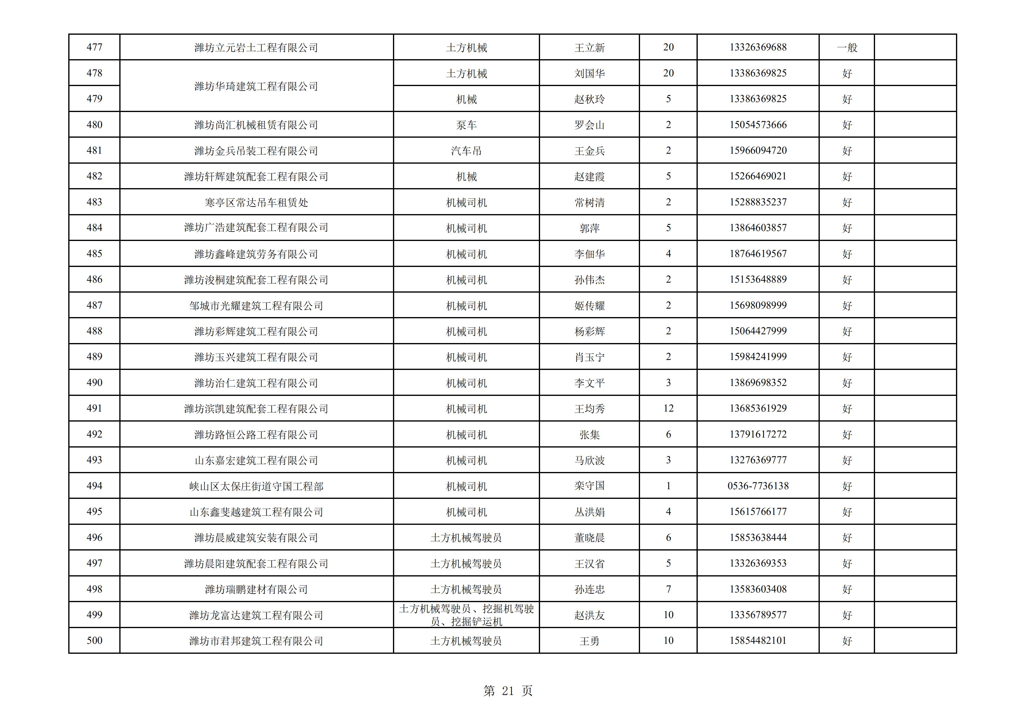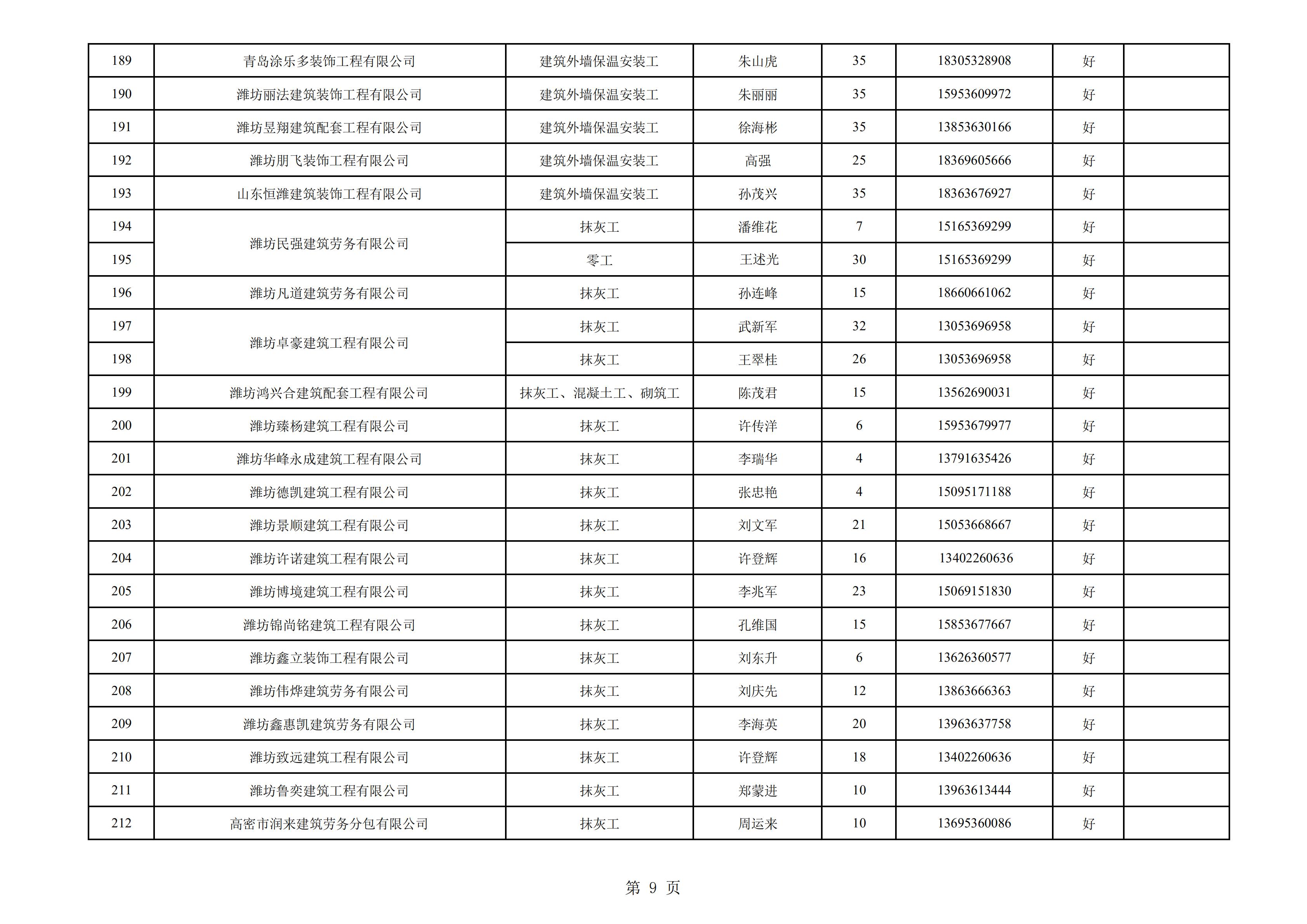 潍坊市建筑劳务队伍数据信息(截止到2020年3月31日)