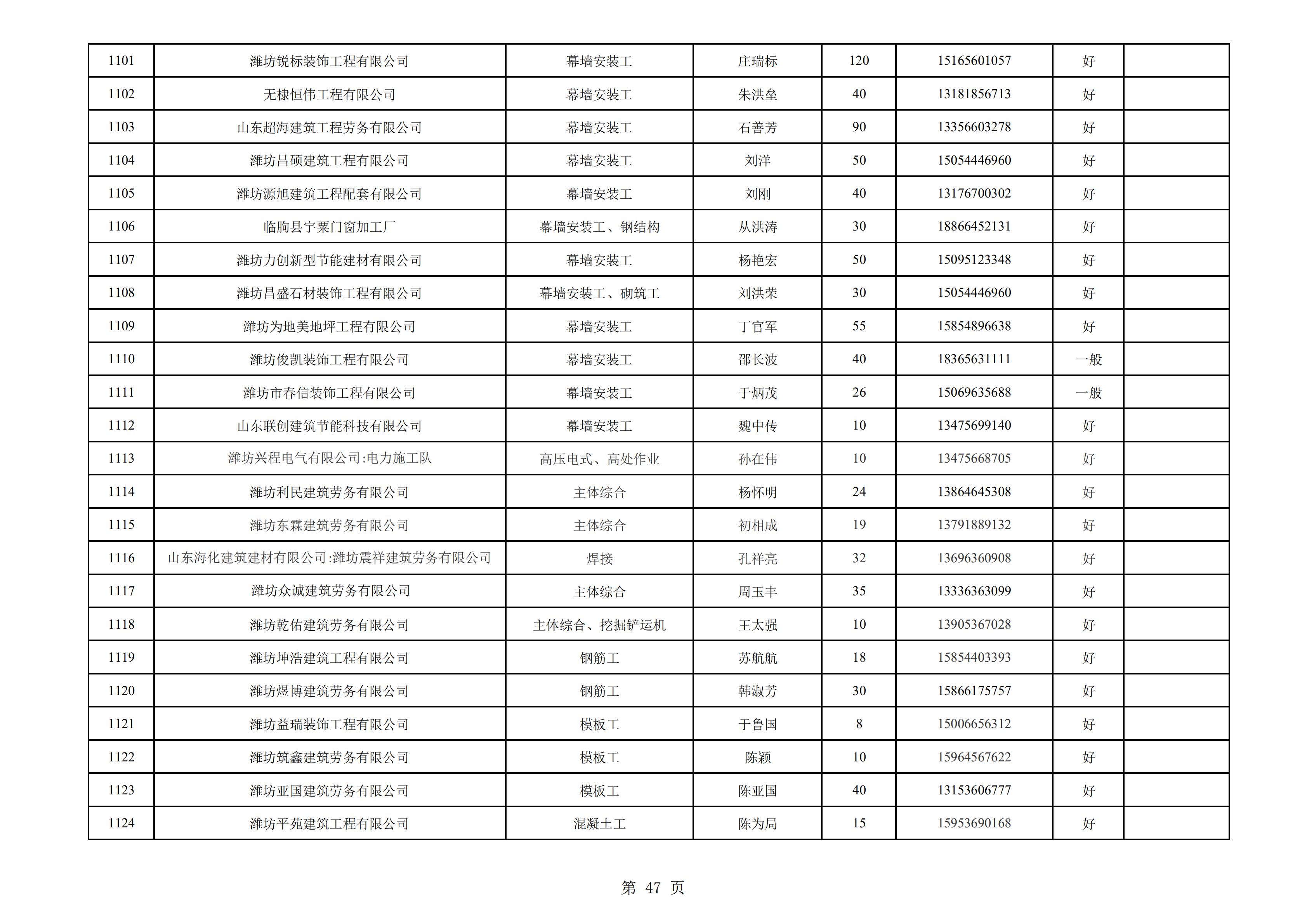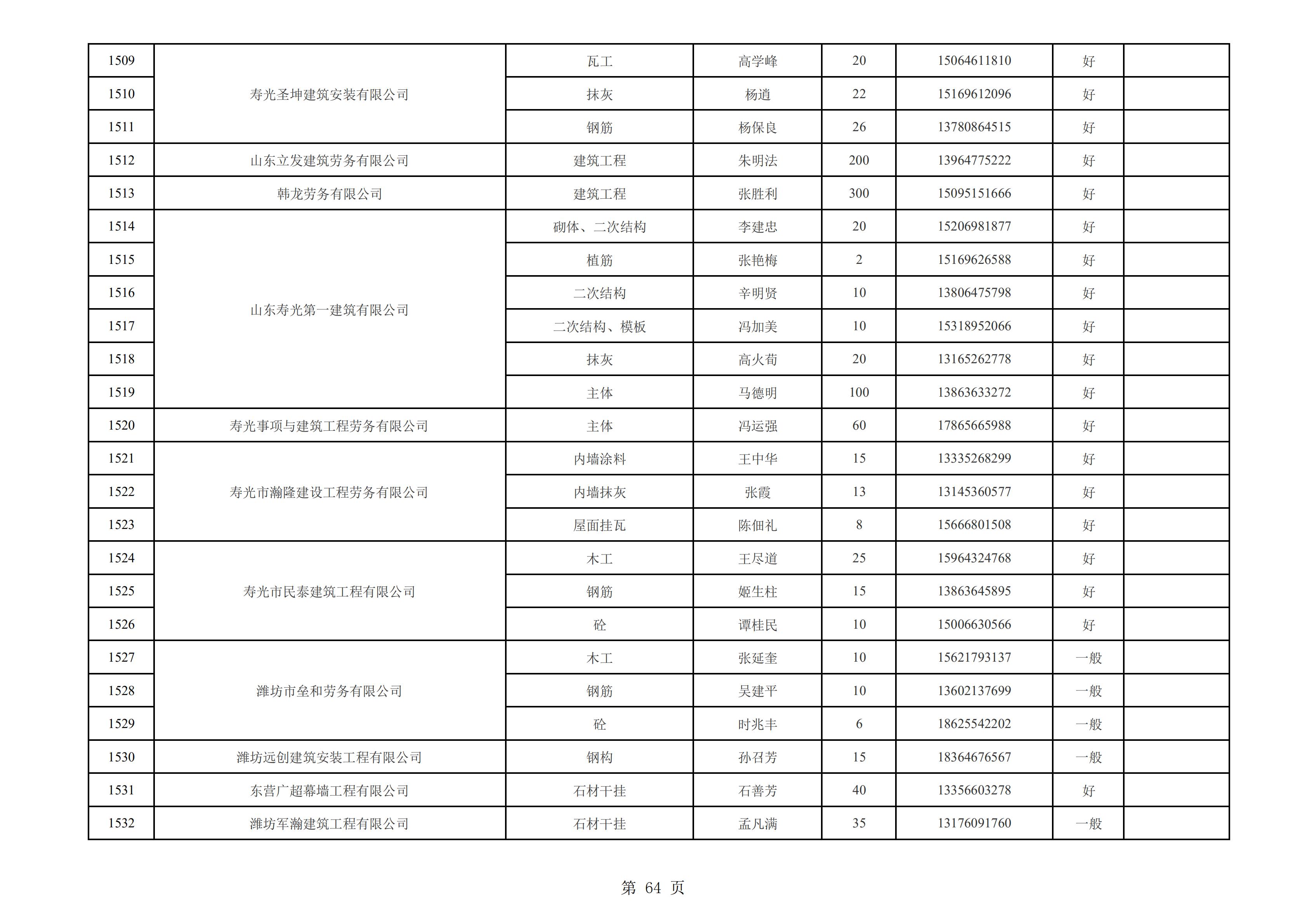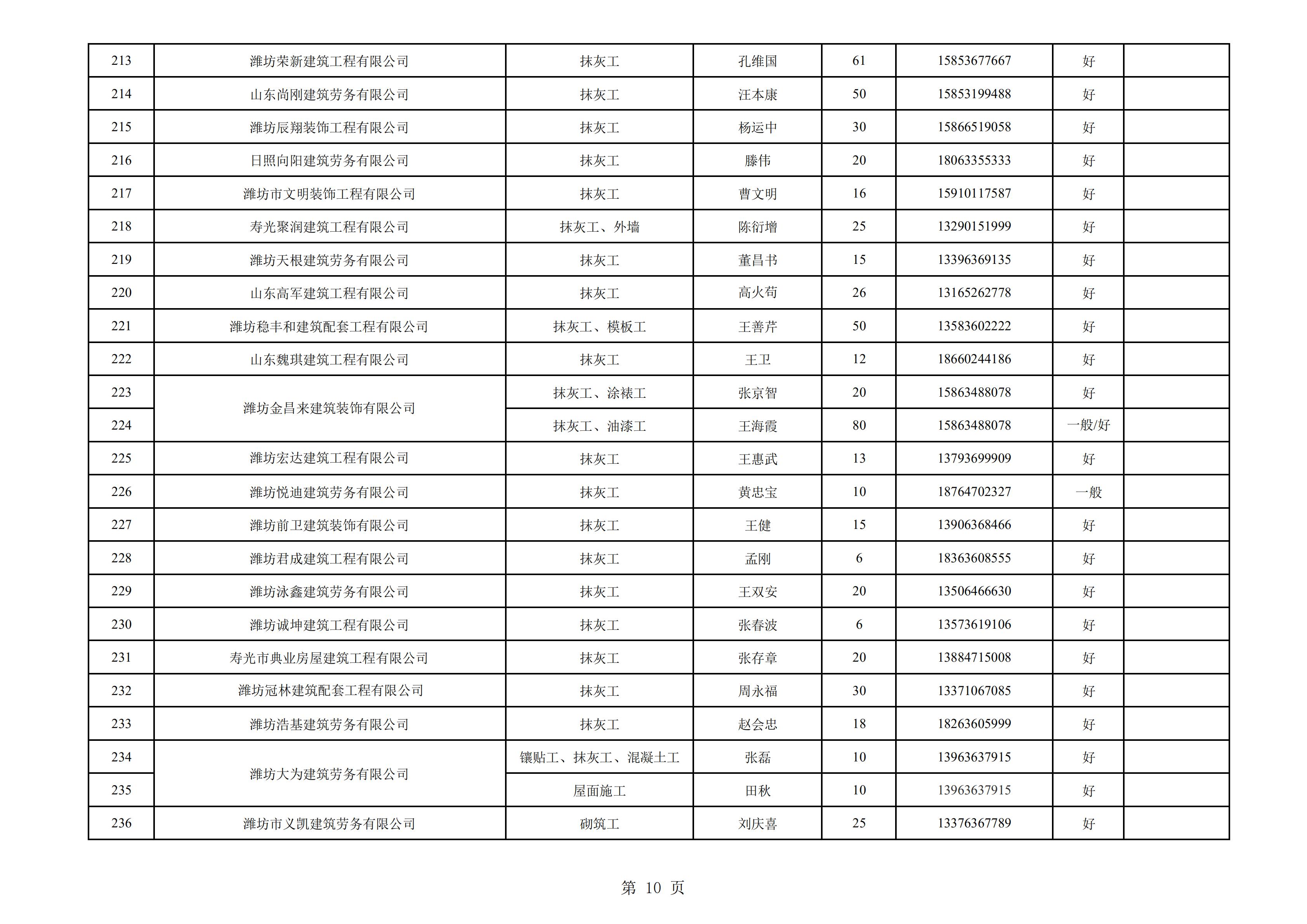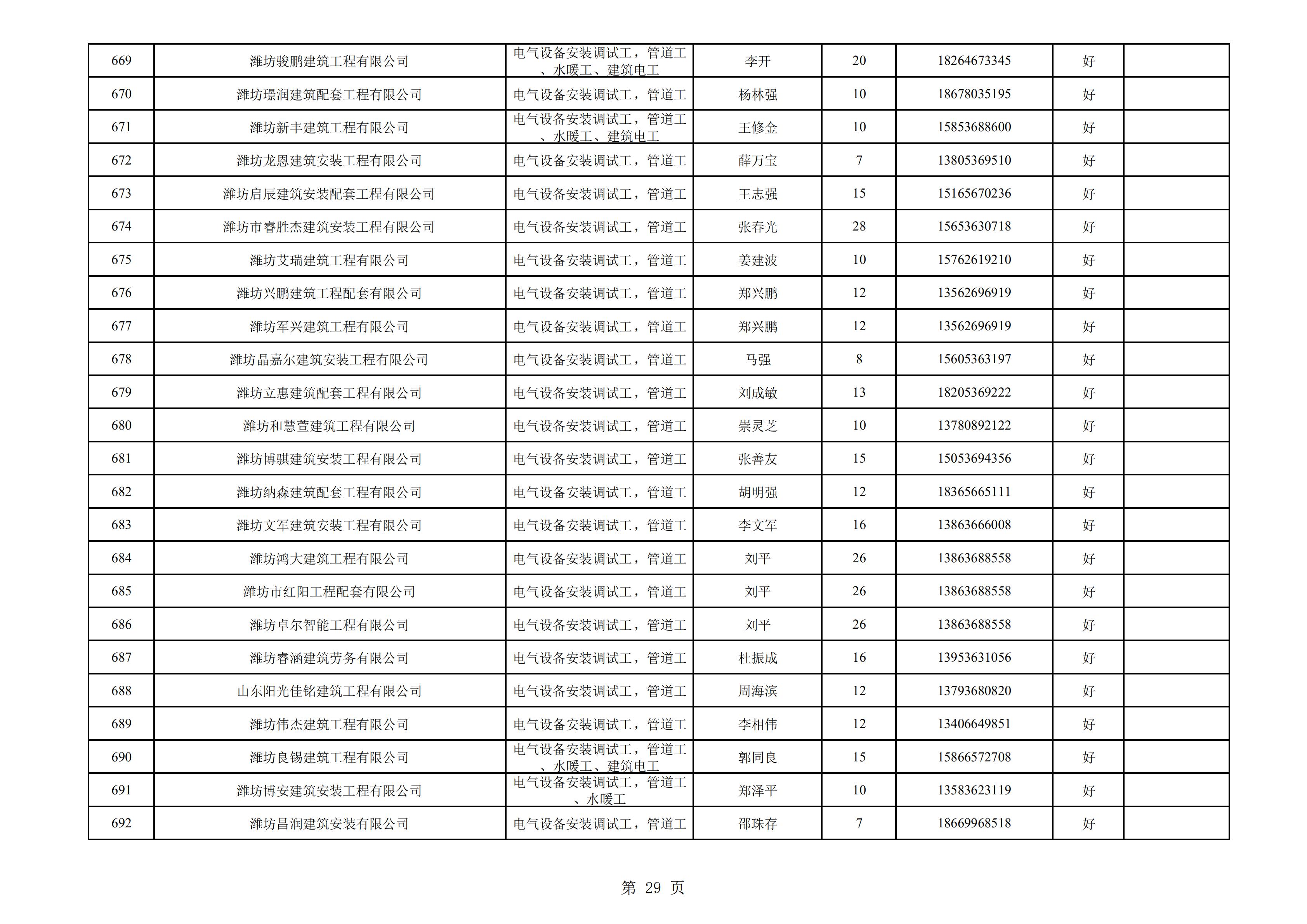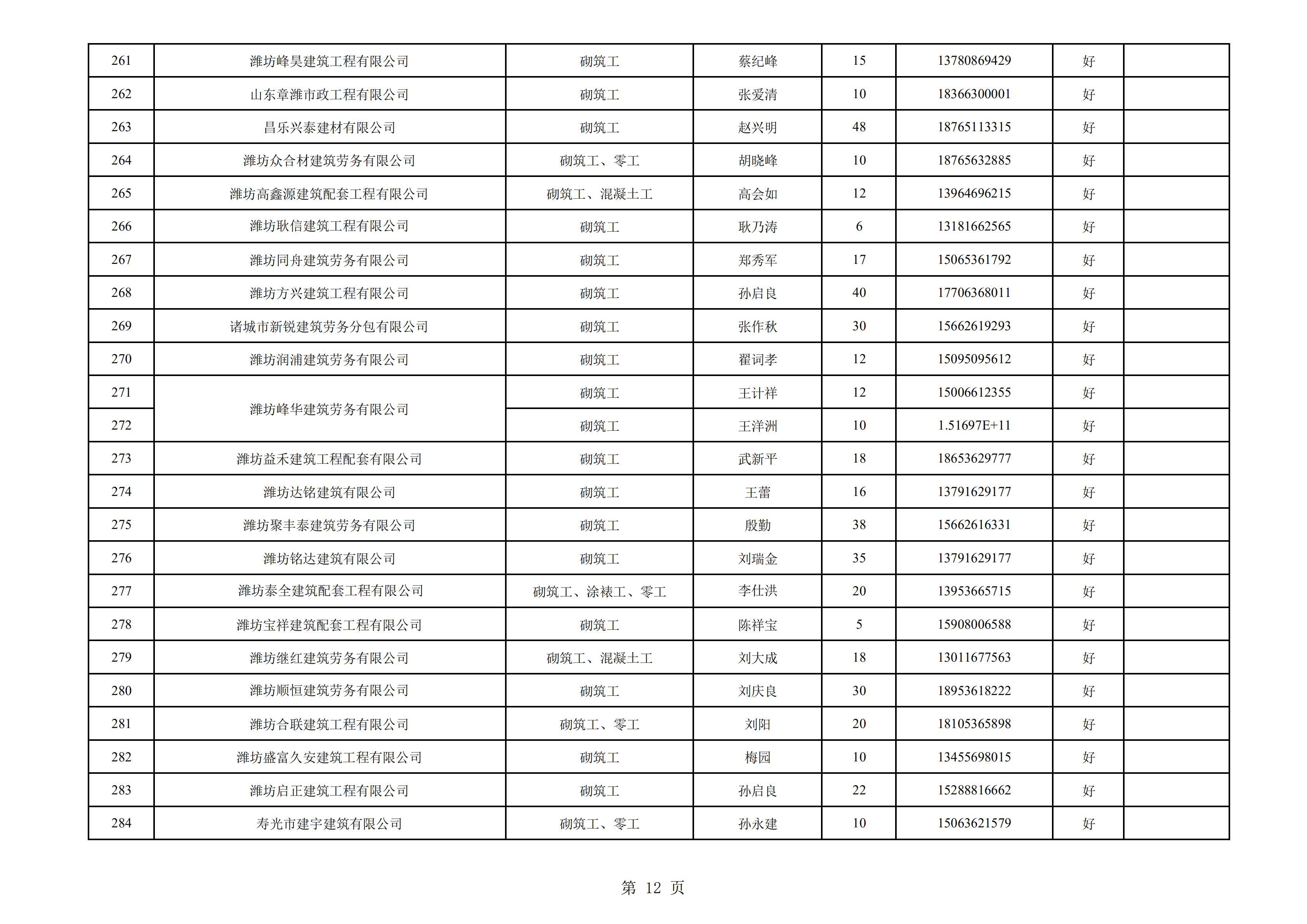 潍坊市建筑劳务队伍数据信息(截止到2020年3月31日)