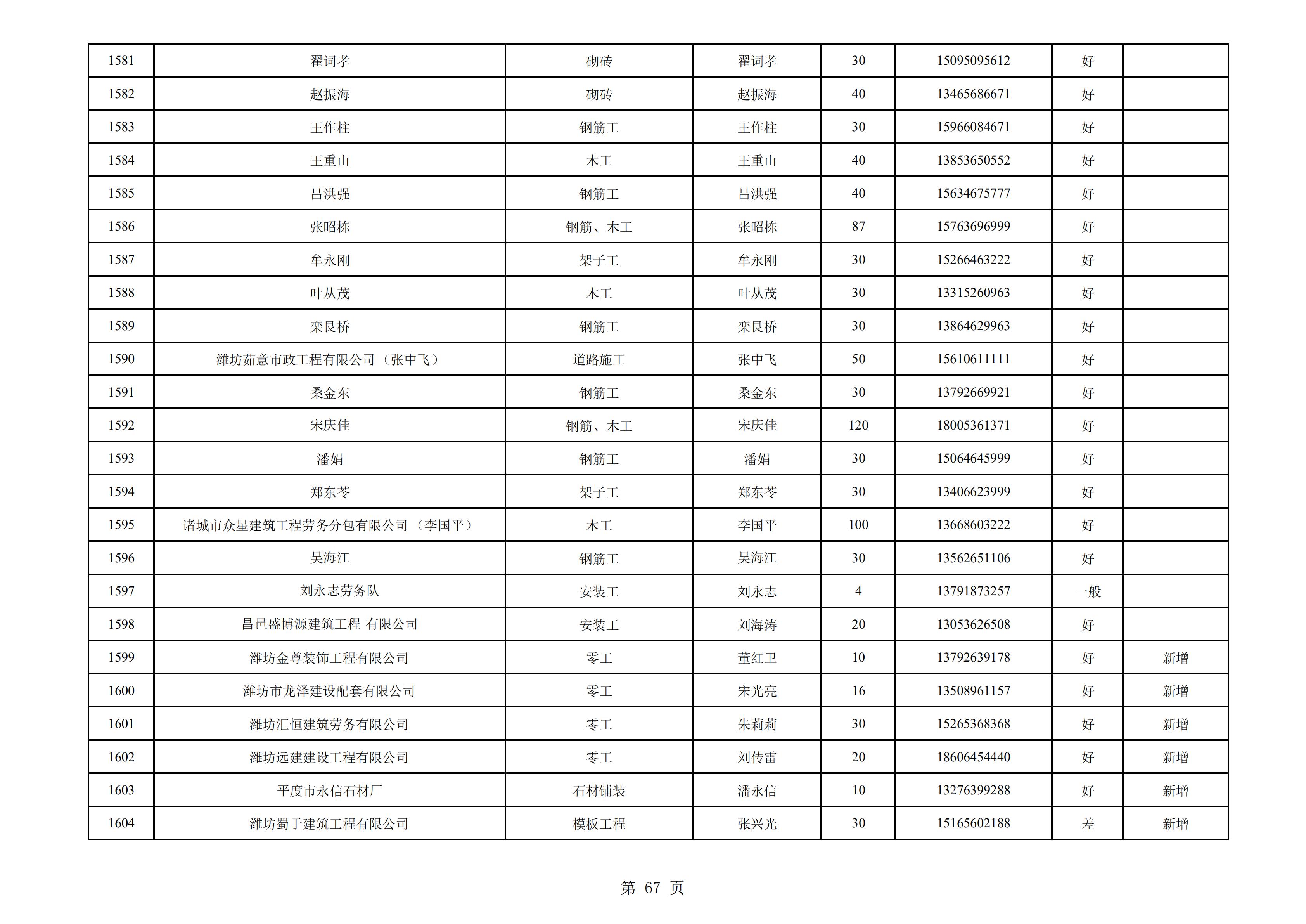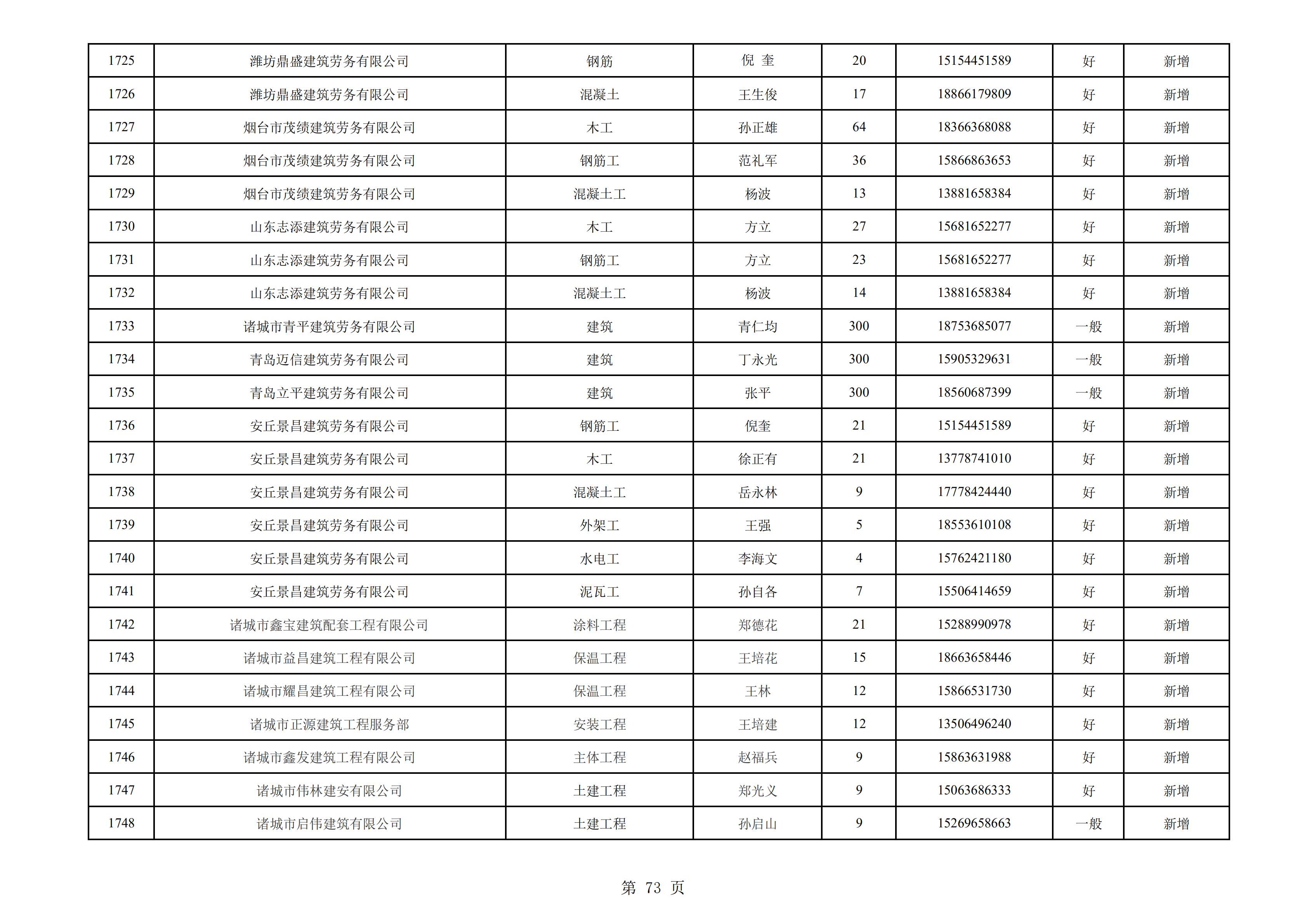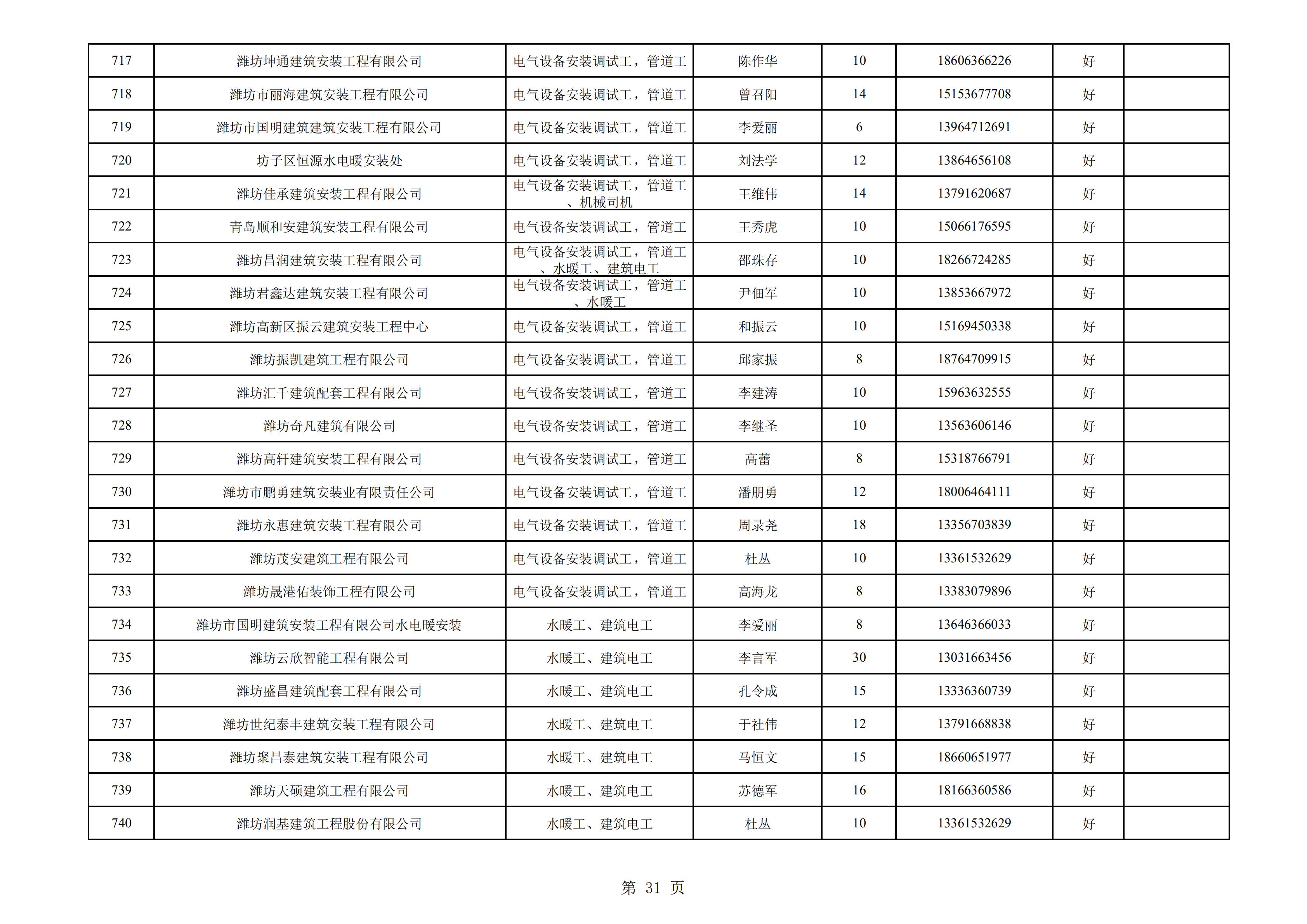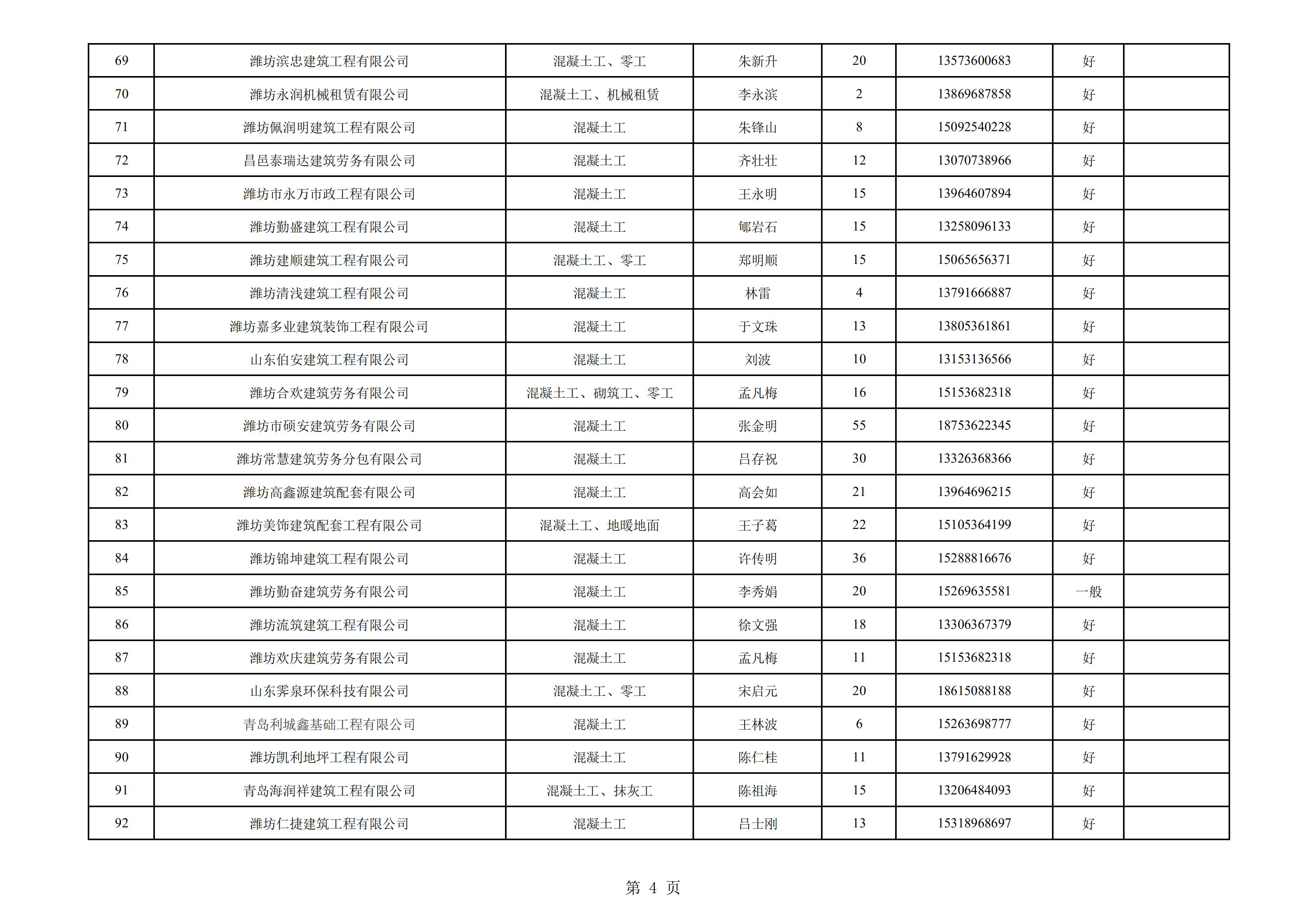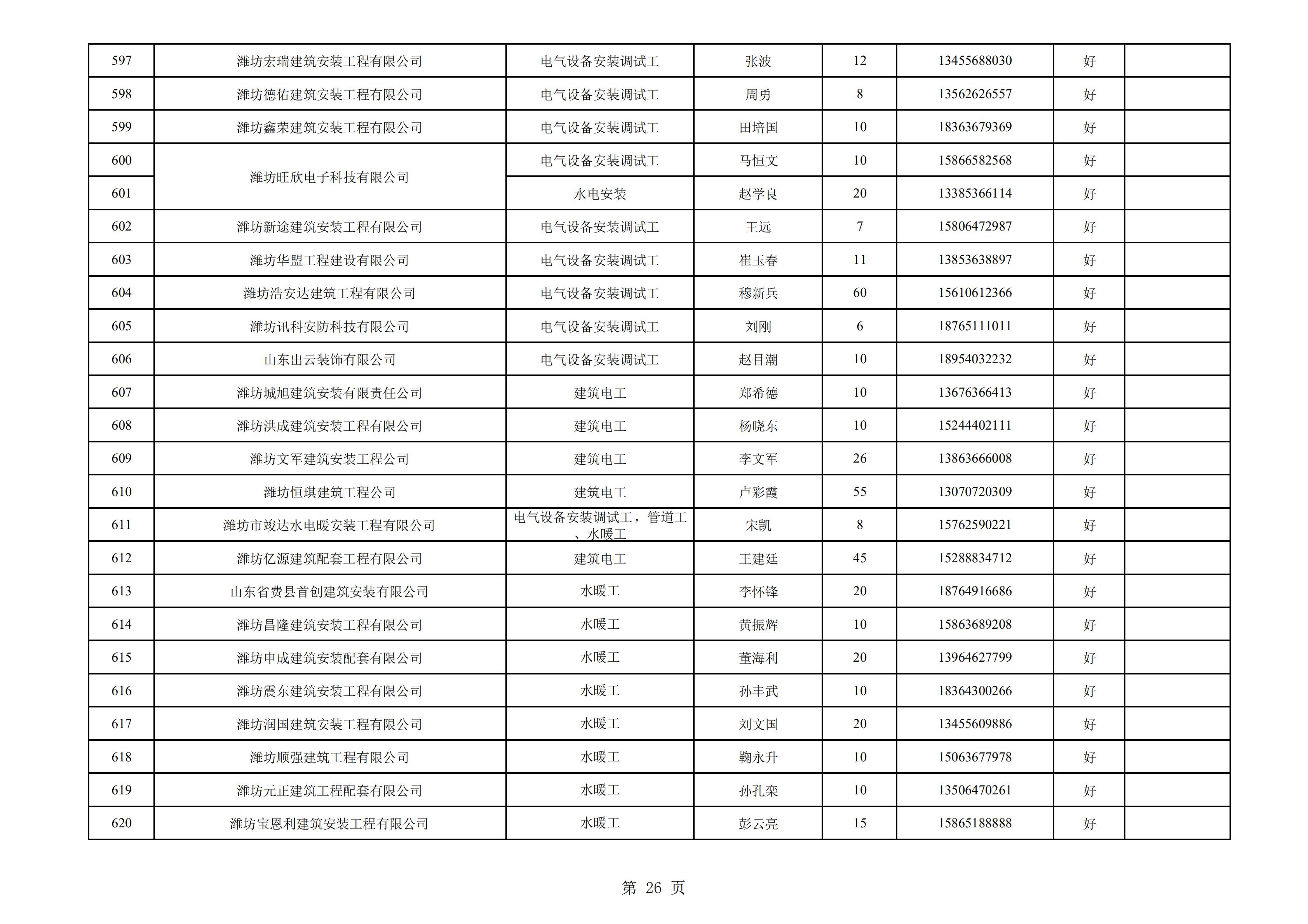 潍坊市建筑劳务队伍数据信息(截止到2020年3月31日)