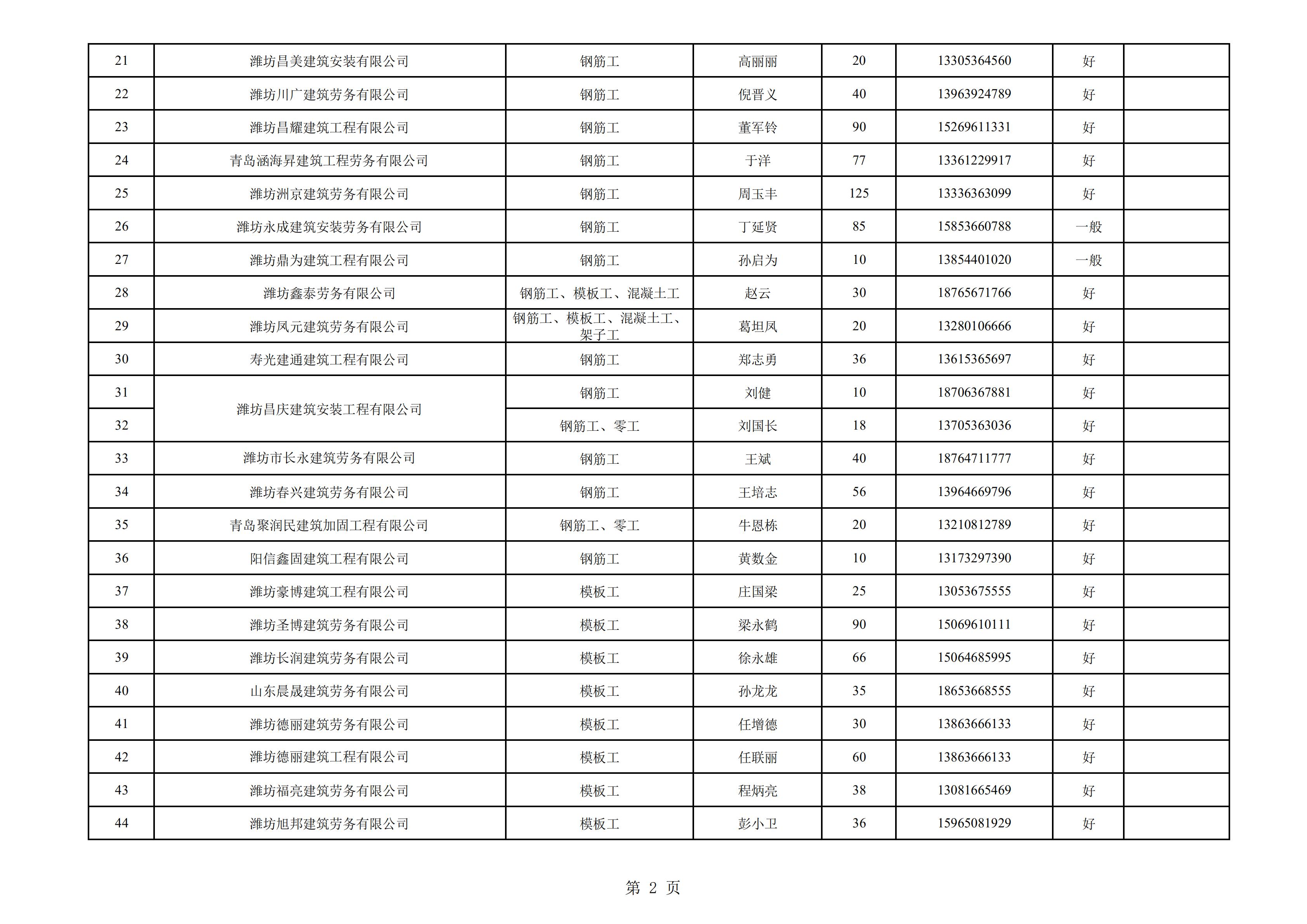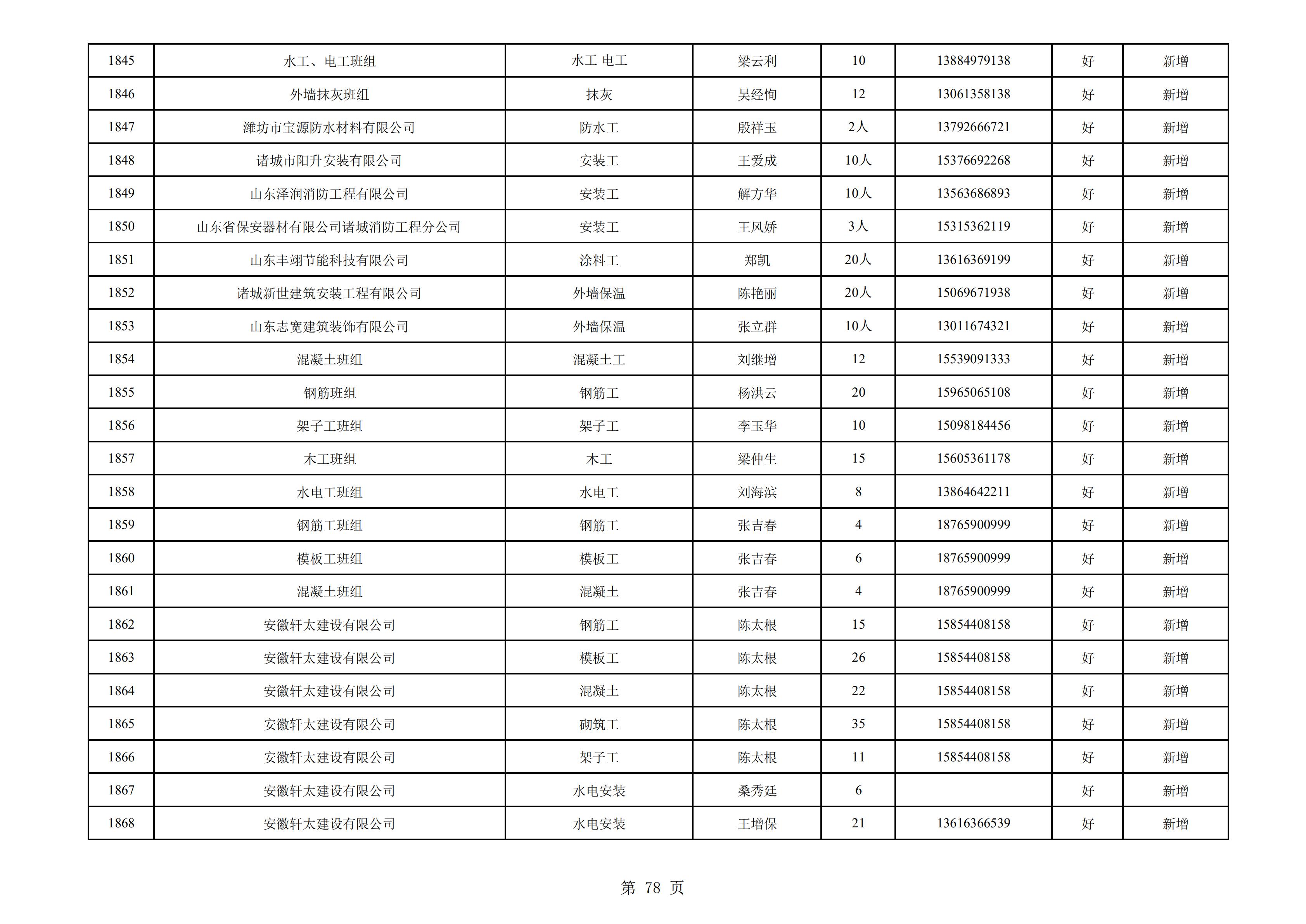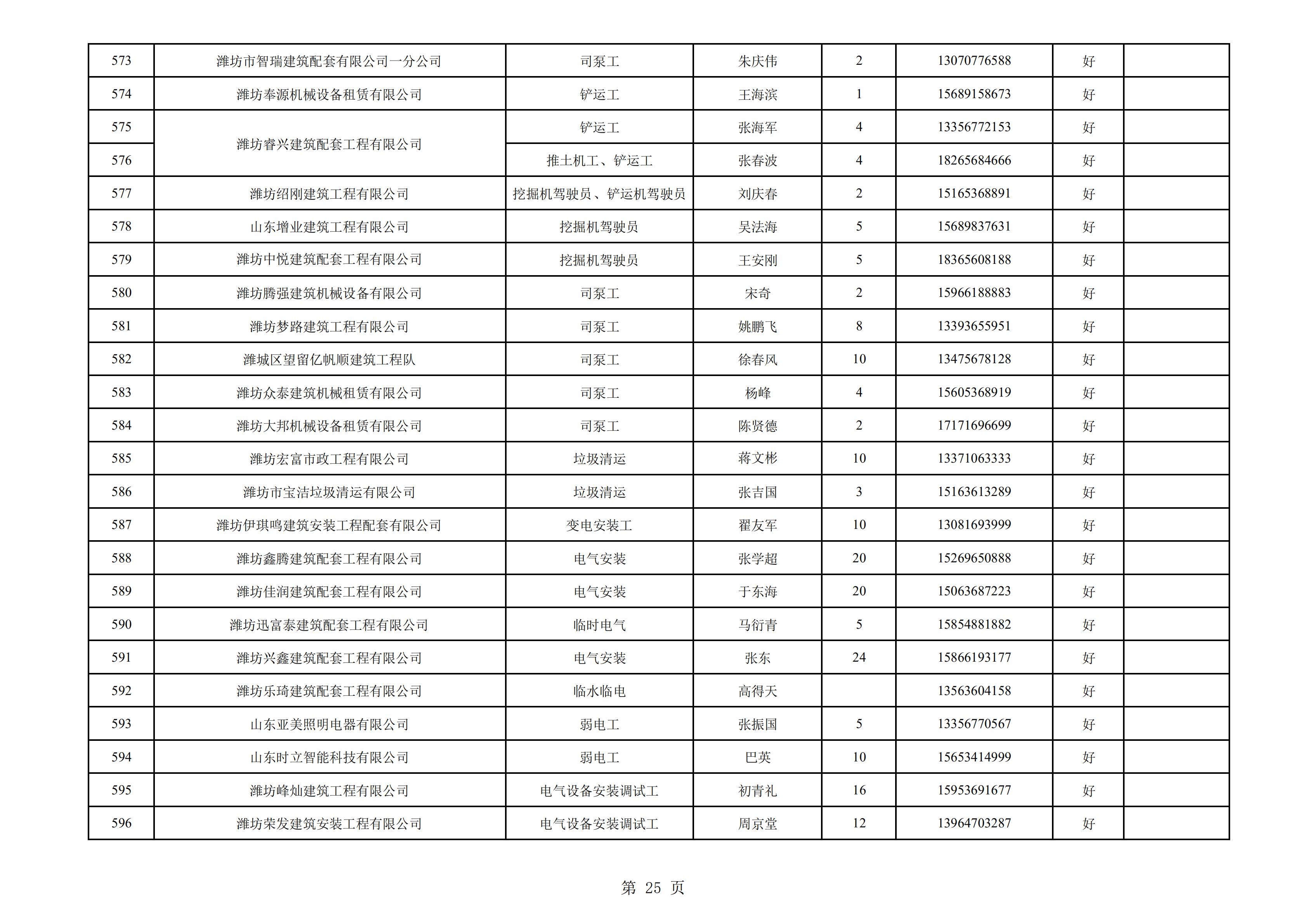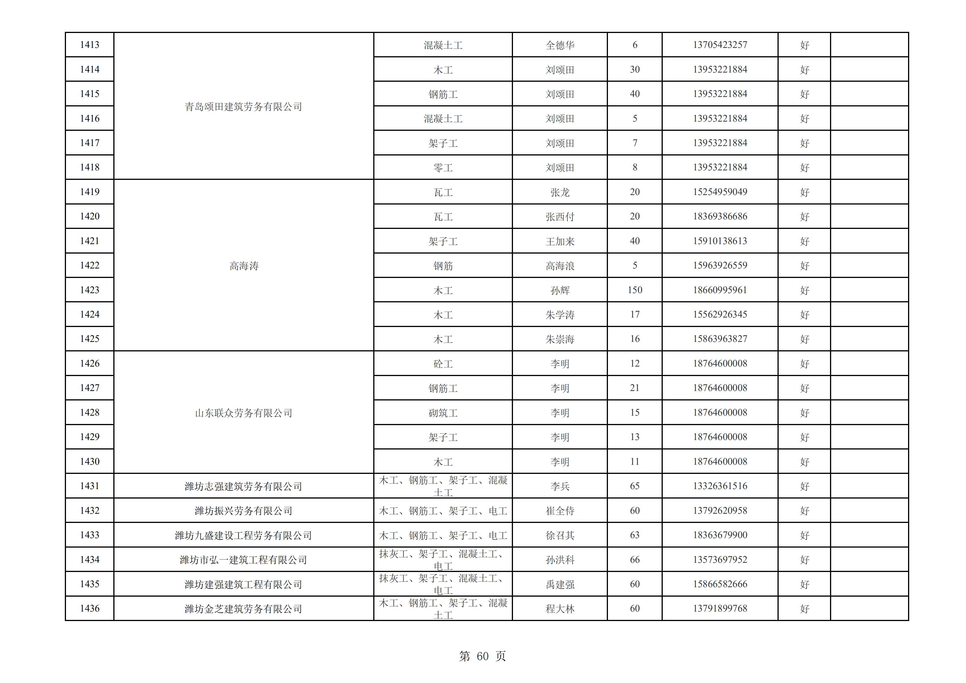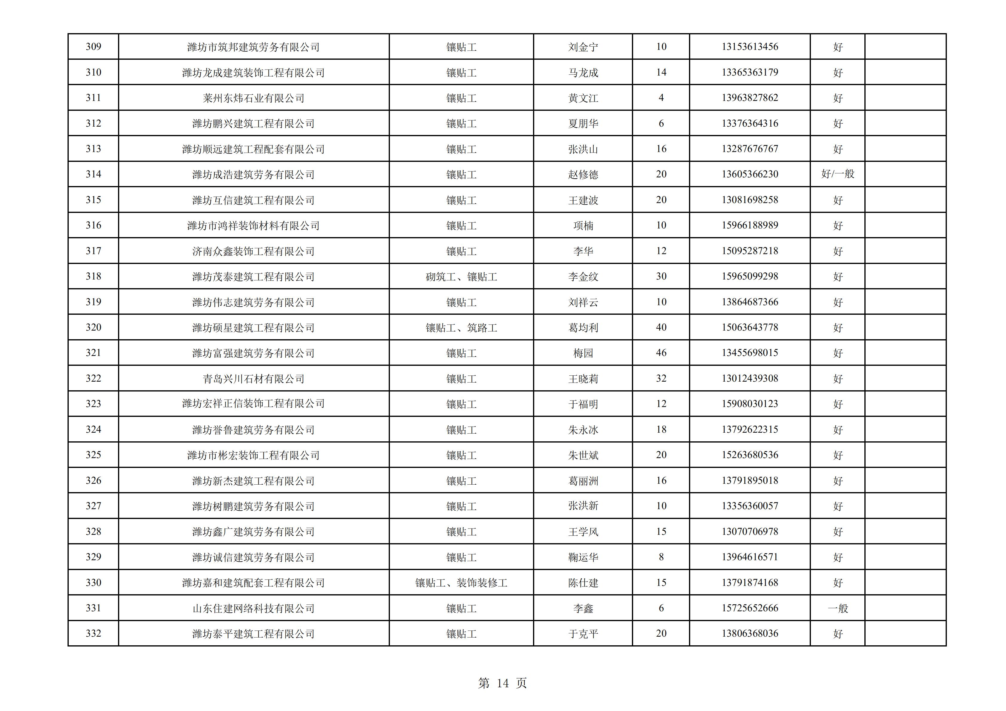 潍坊市建筑劳务队伍数据信息(截止到2020年3月31日)