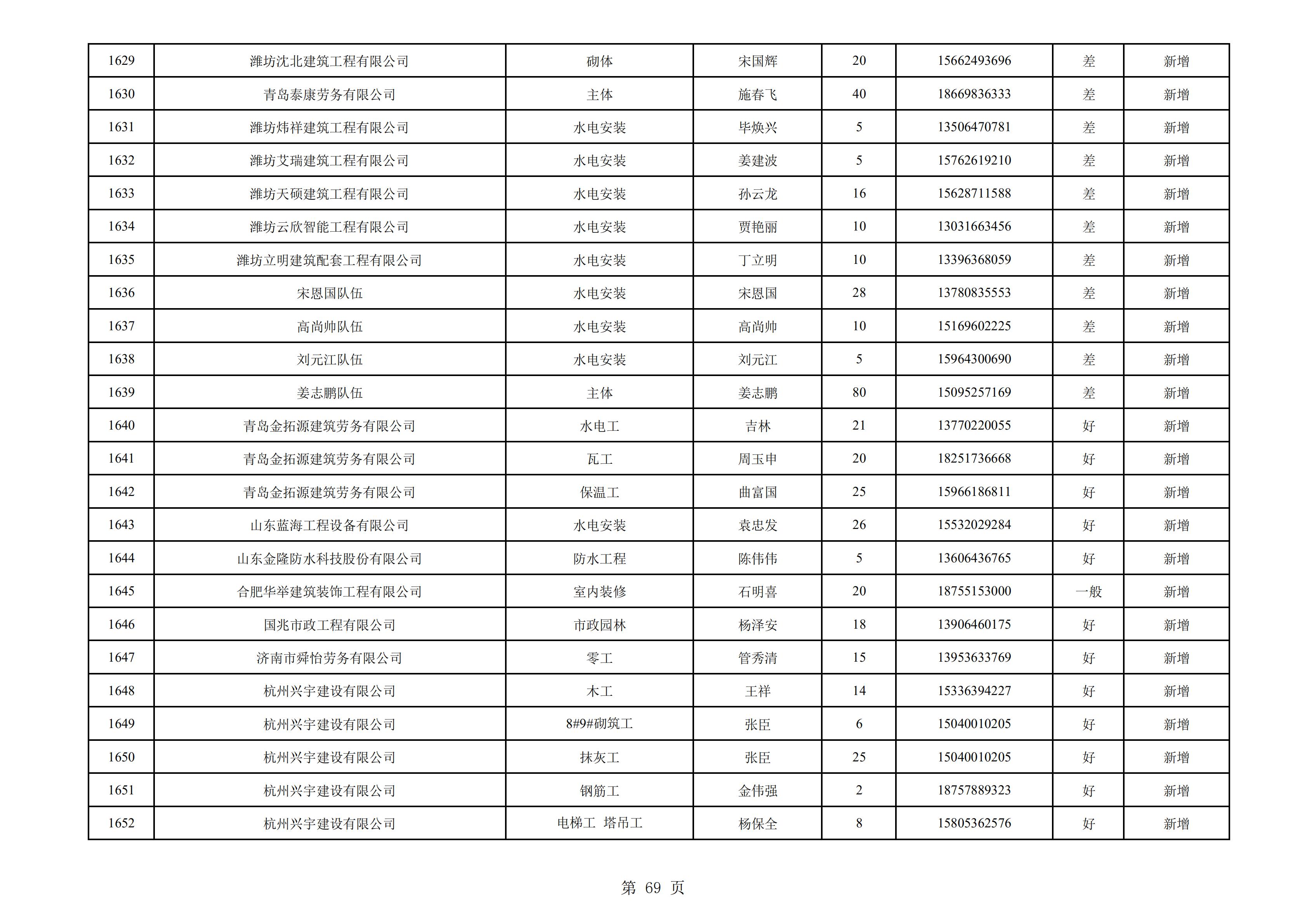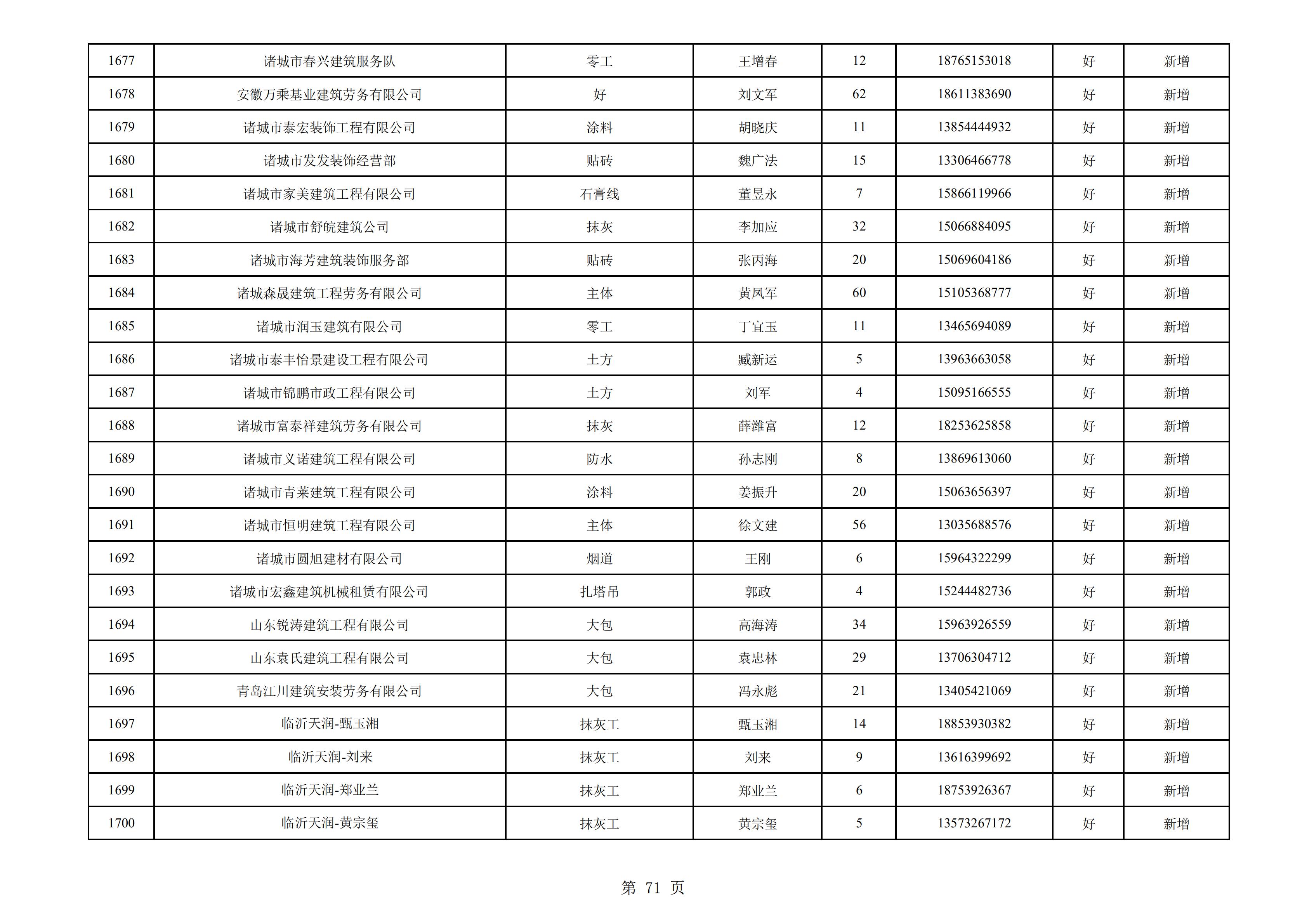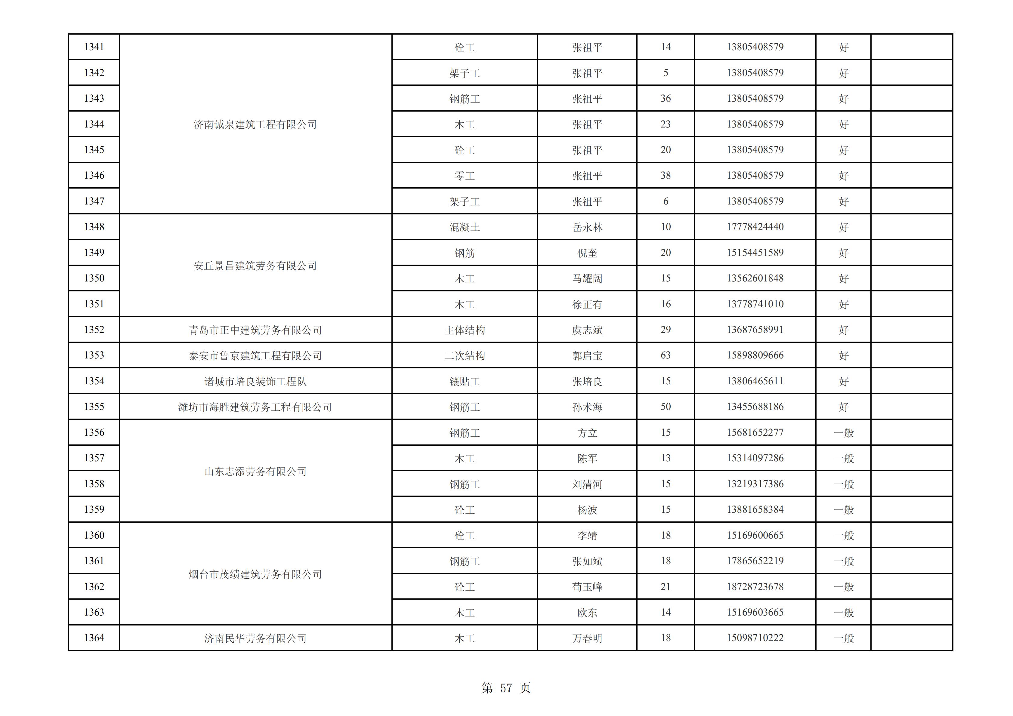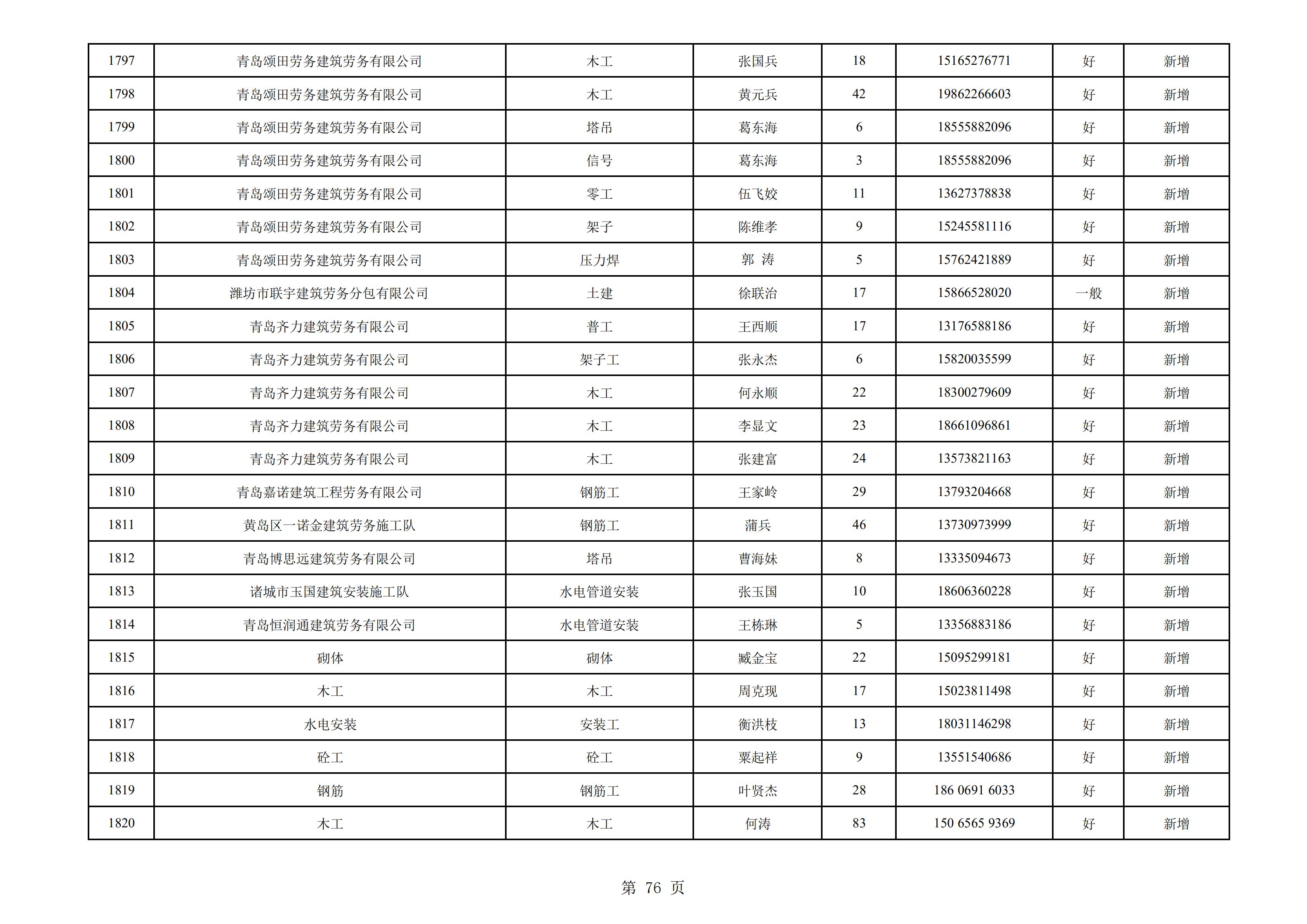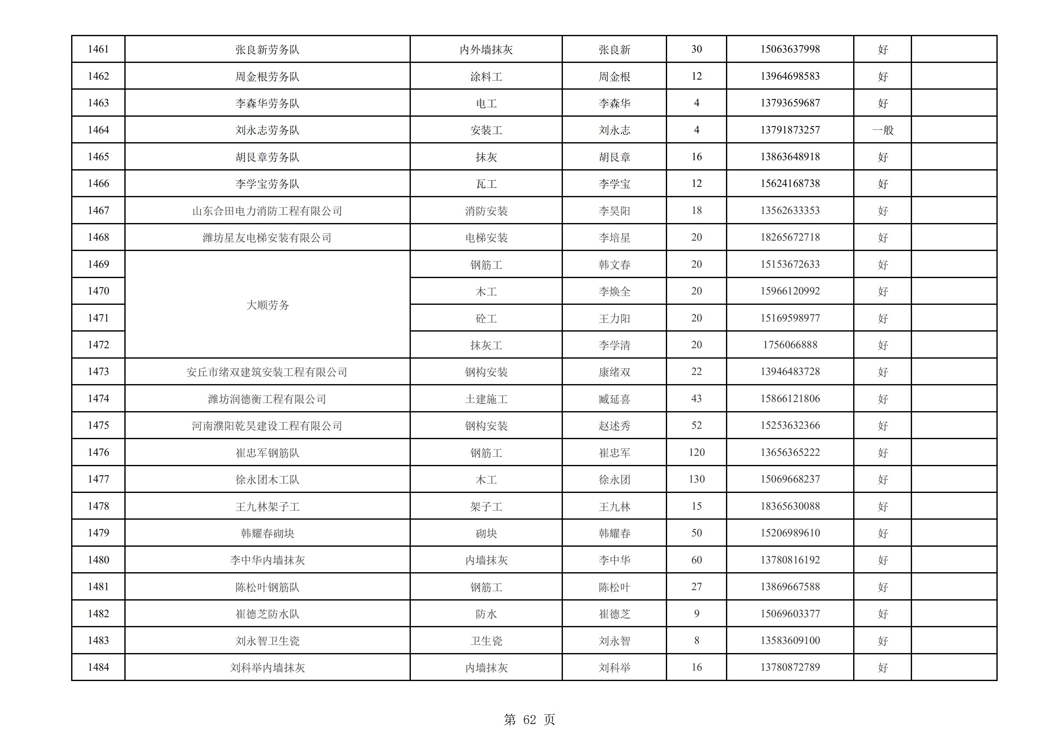 潍坊市建筑劳务队伍数据信息(截止到2020年3月31日)