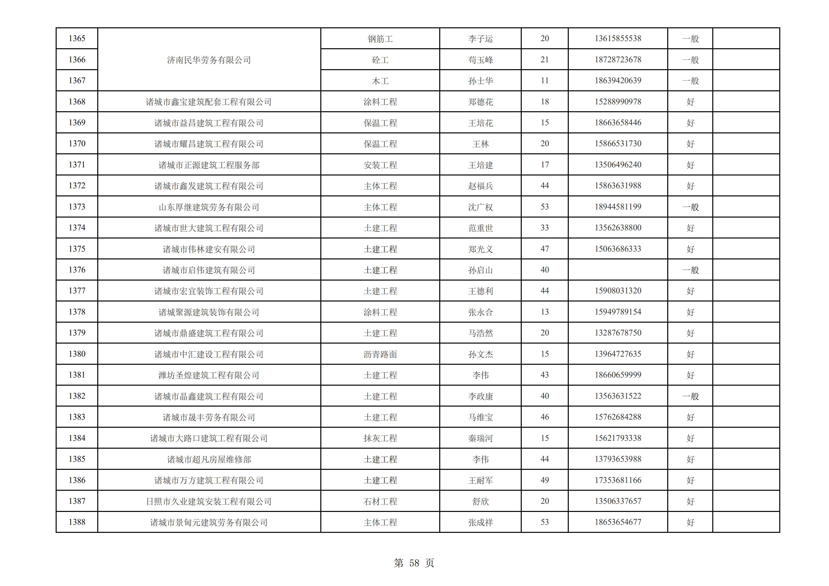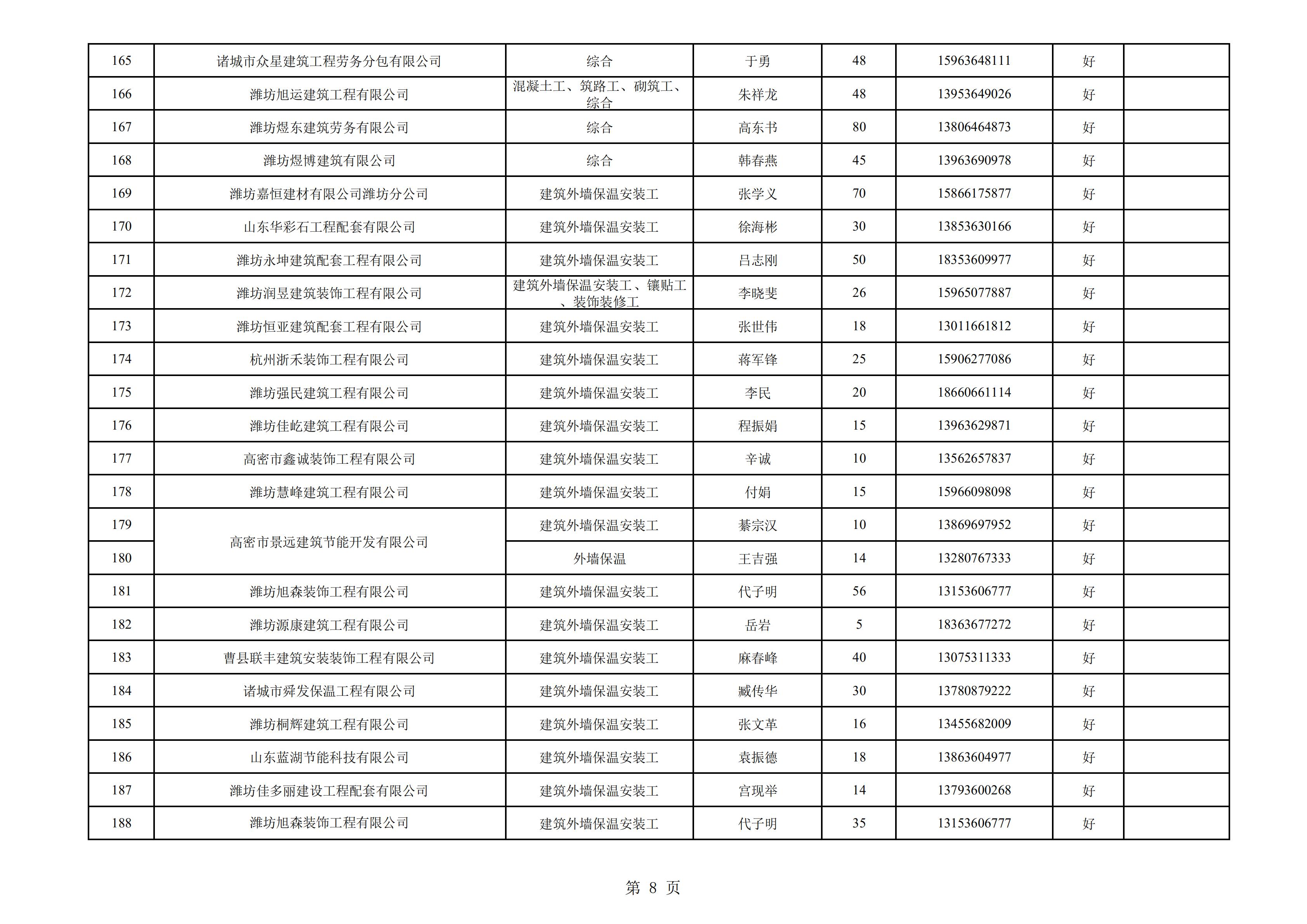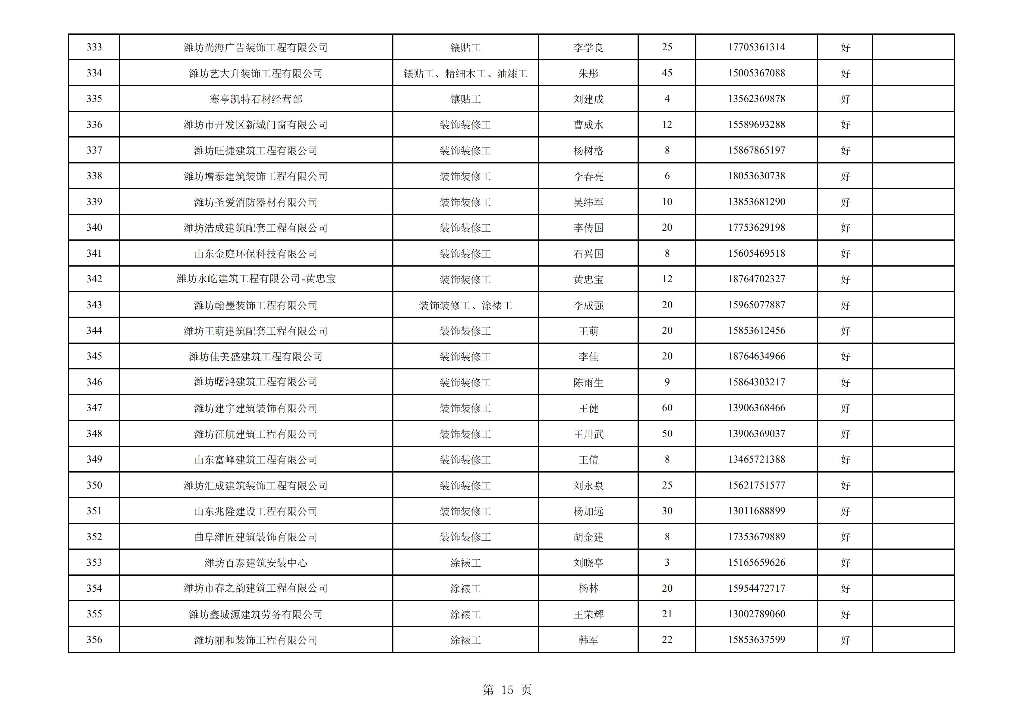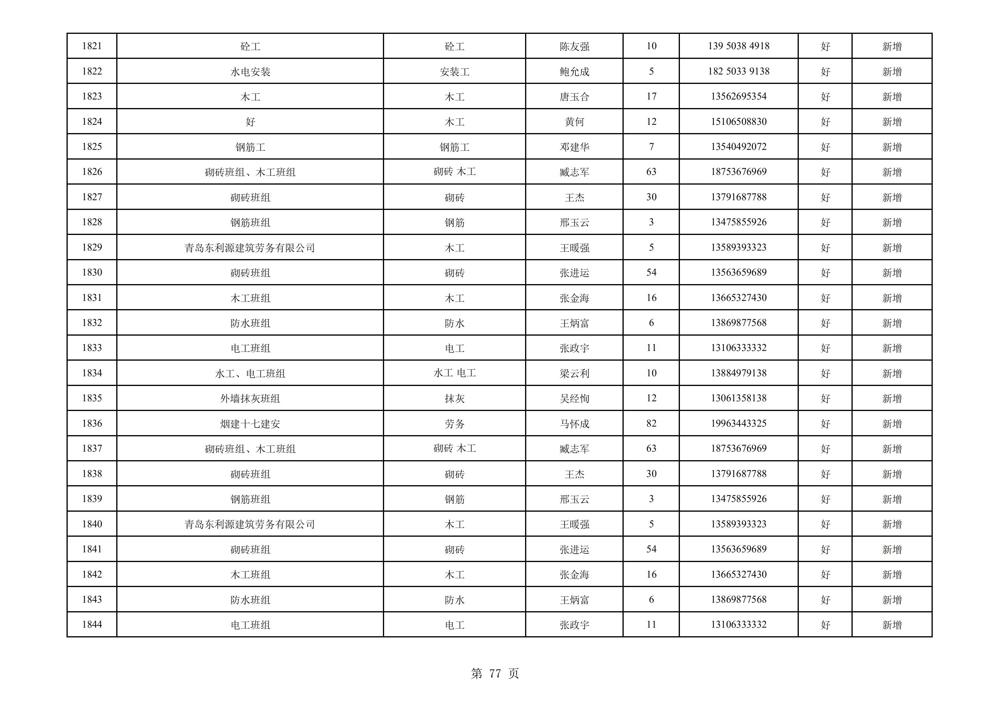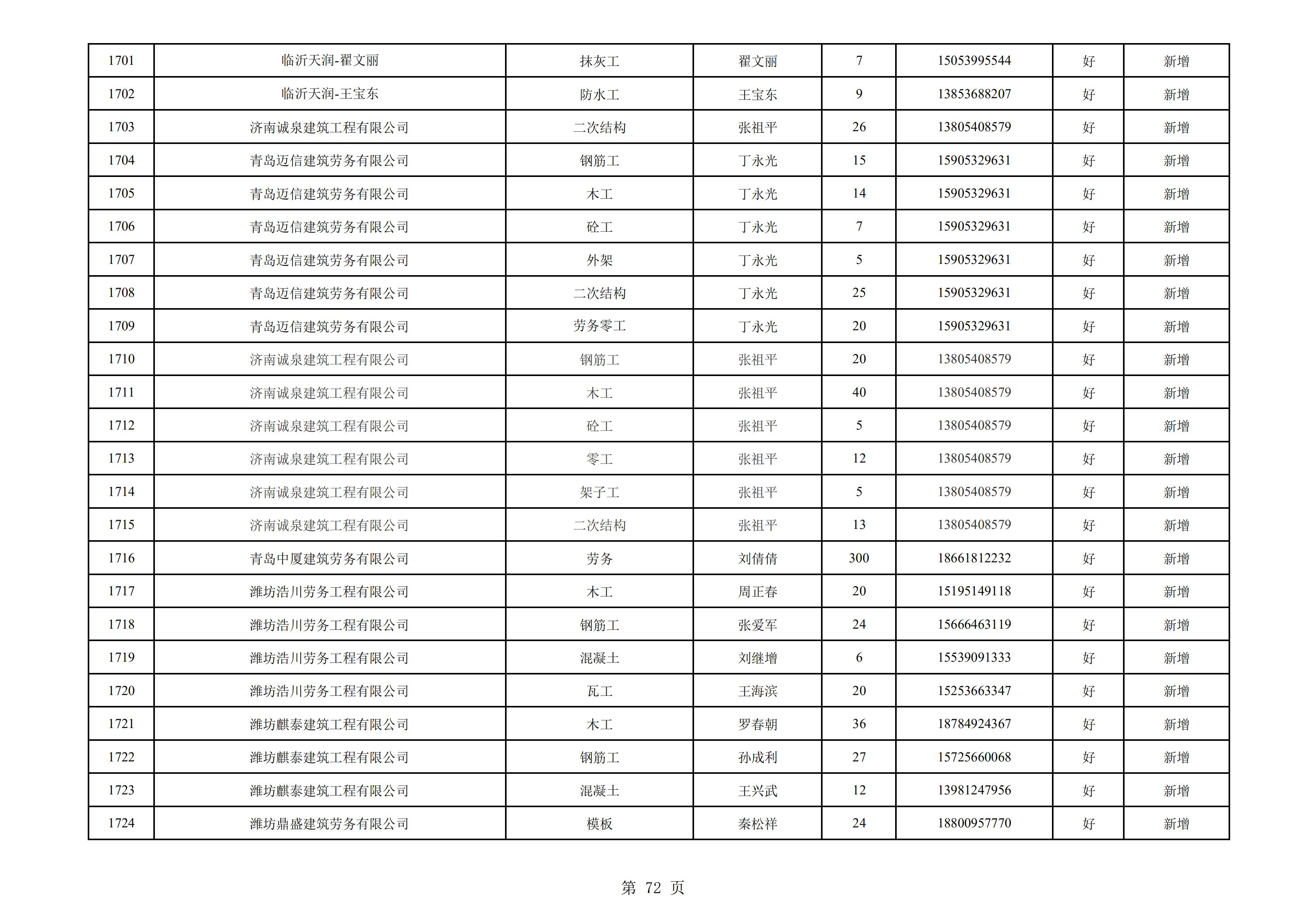 潍坊市建筑劳务队伍数据信息(截止到2020年3月31日)