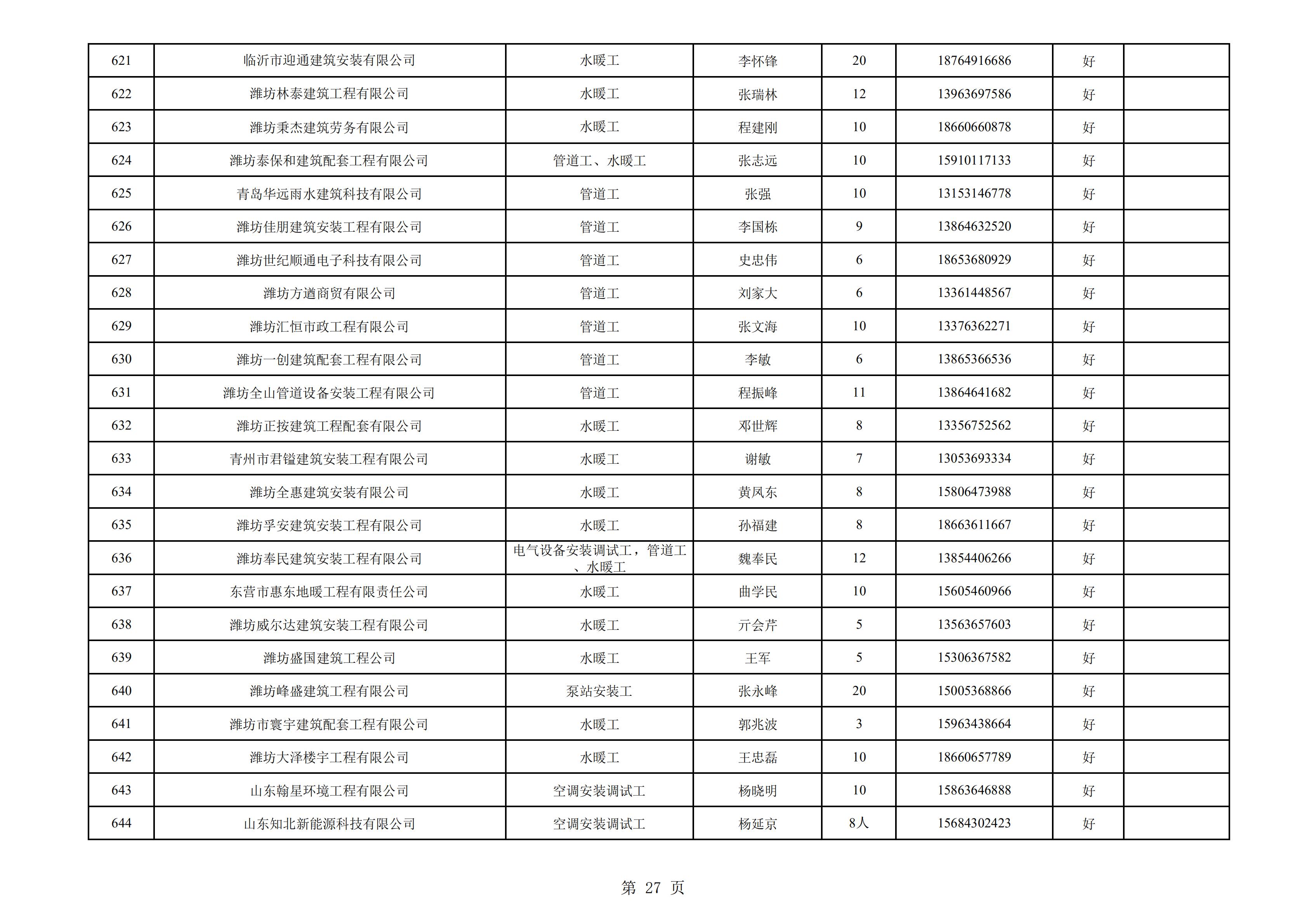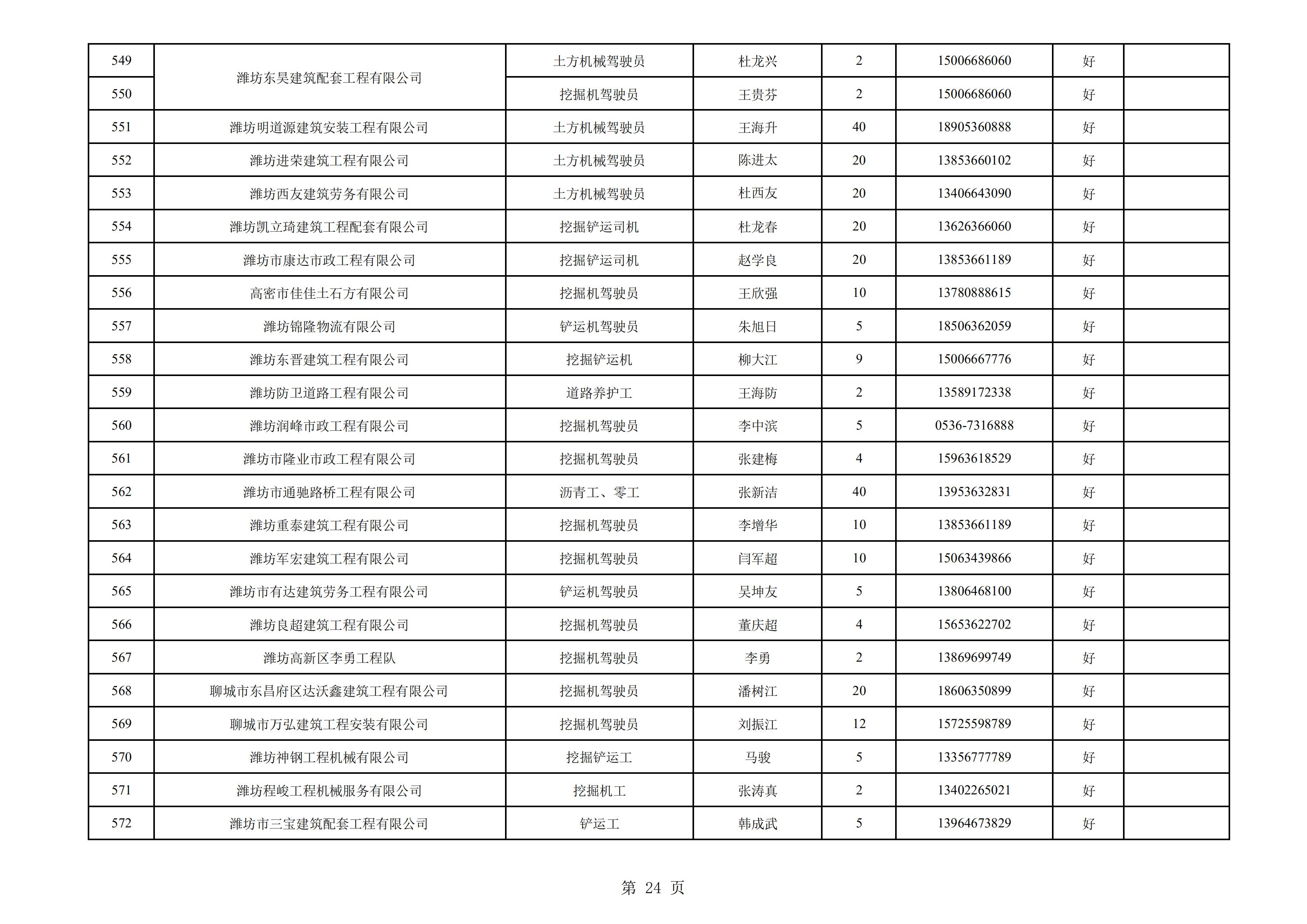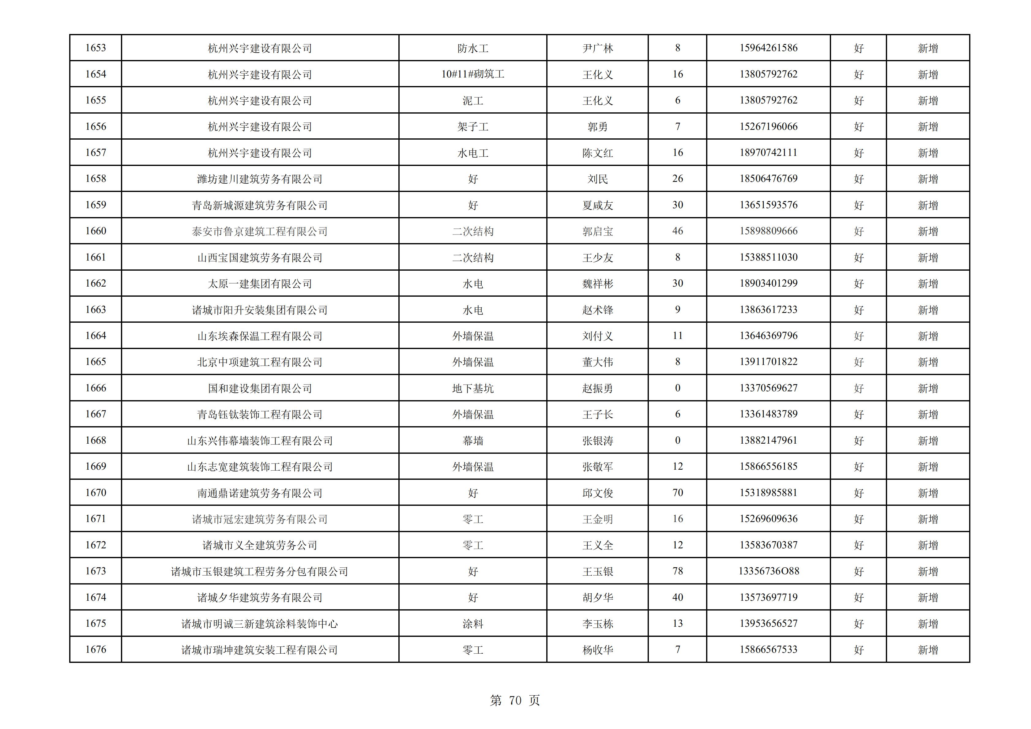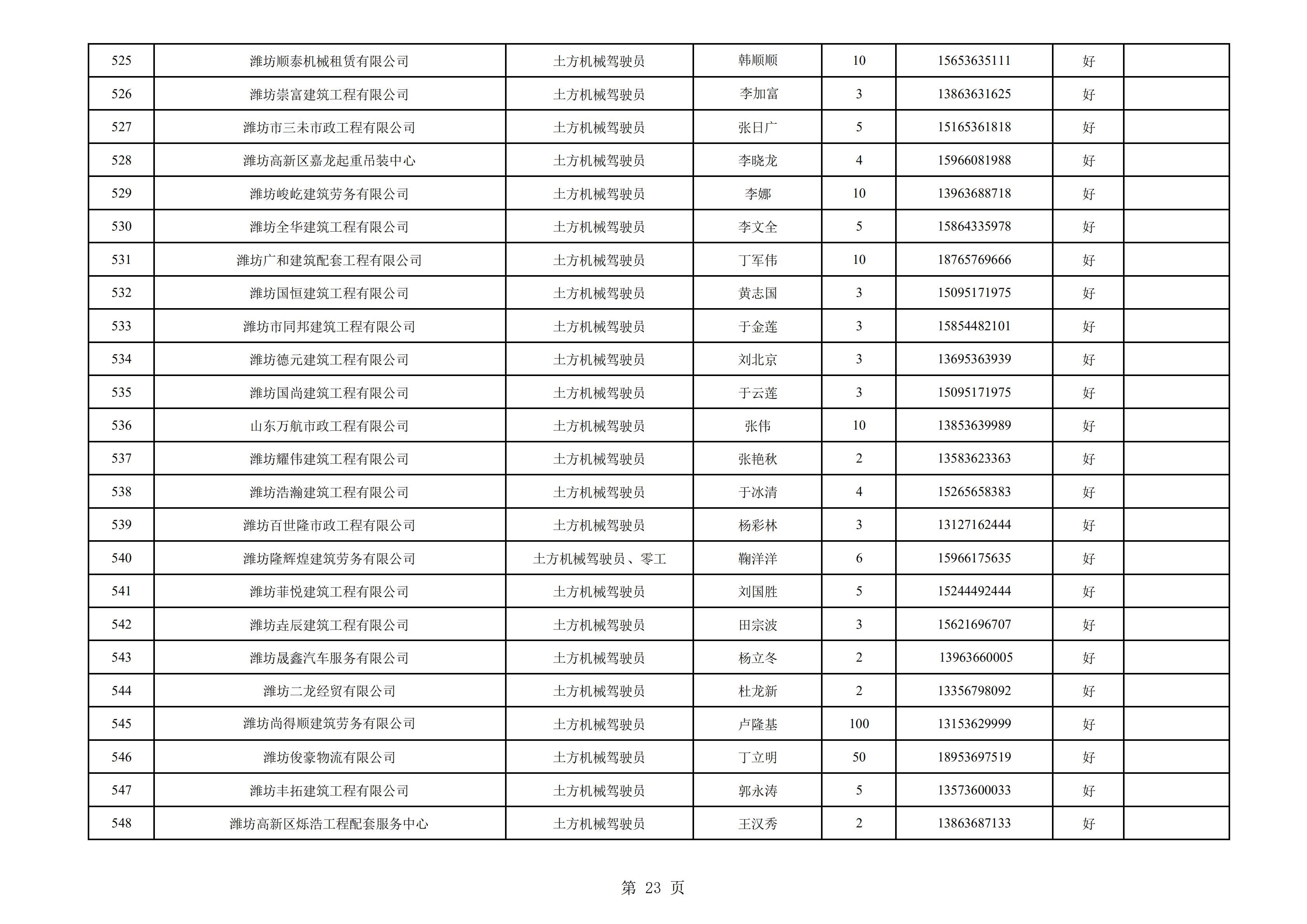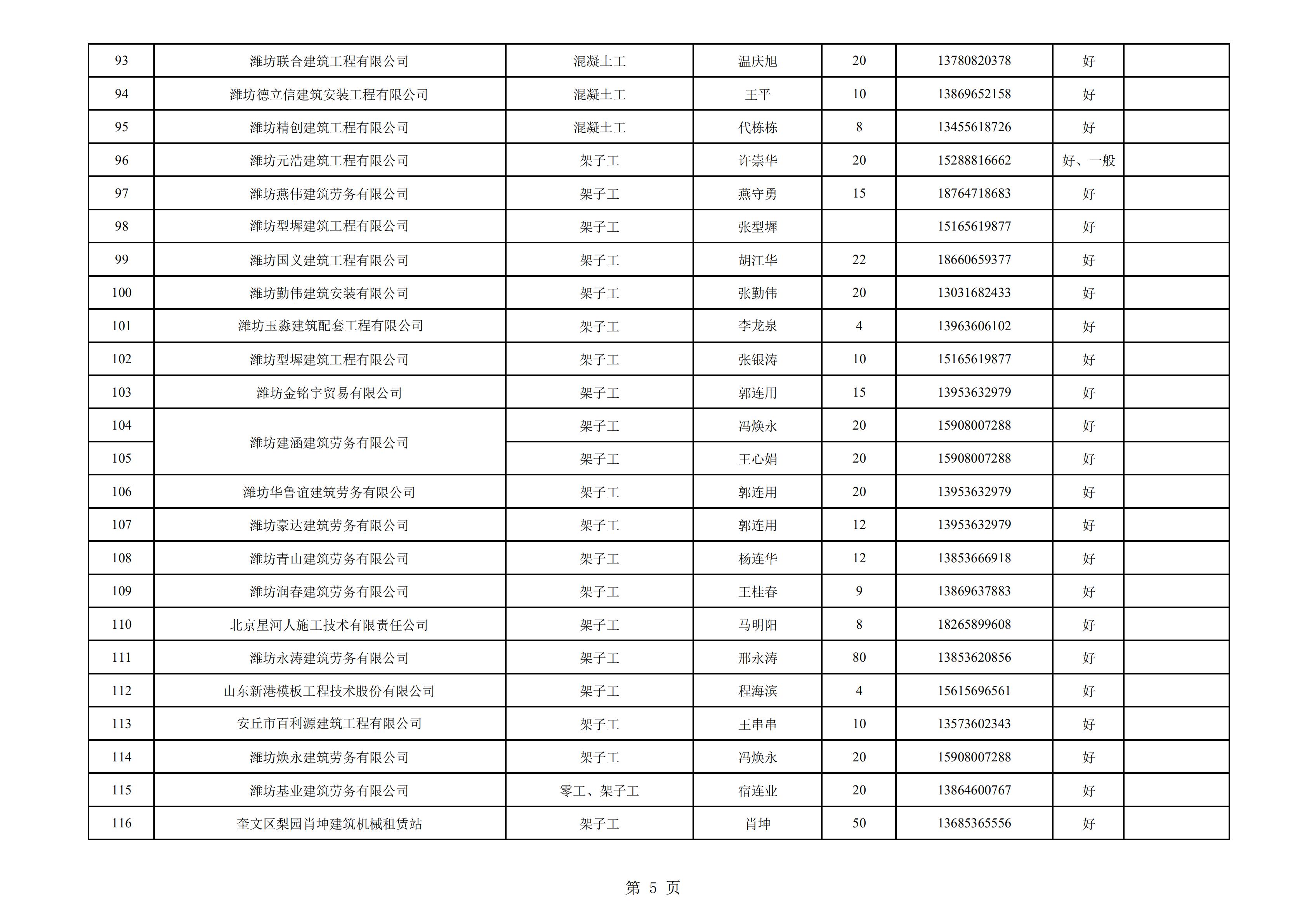 潍坊市建筑劳务队伍数据信息(截止到2020年3月31日)